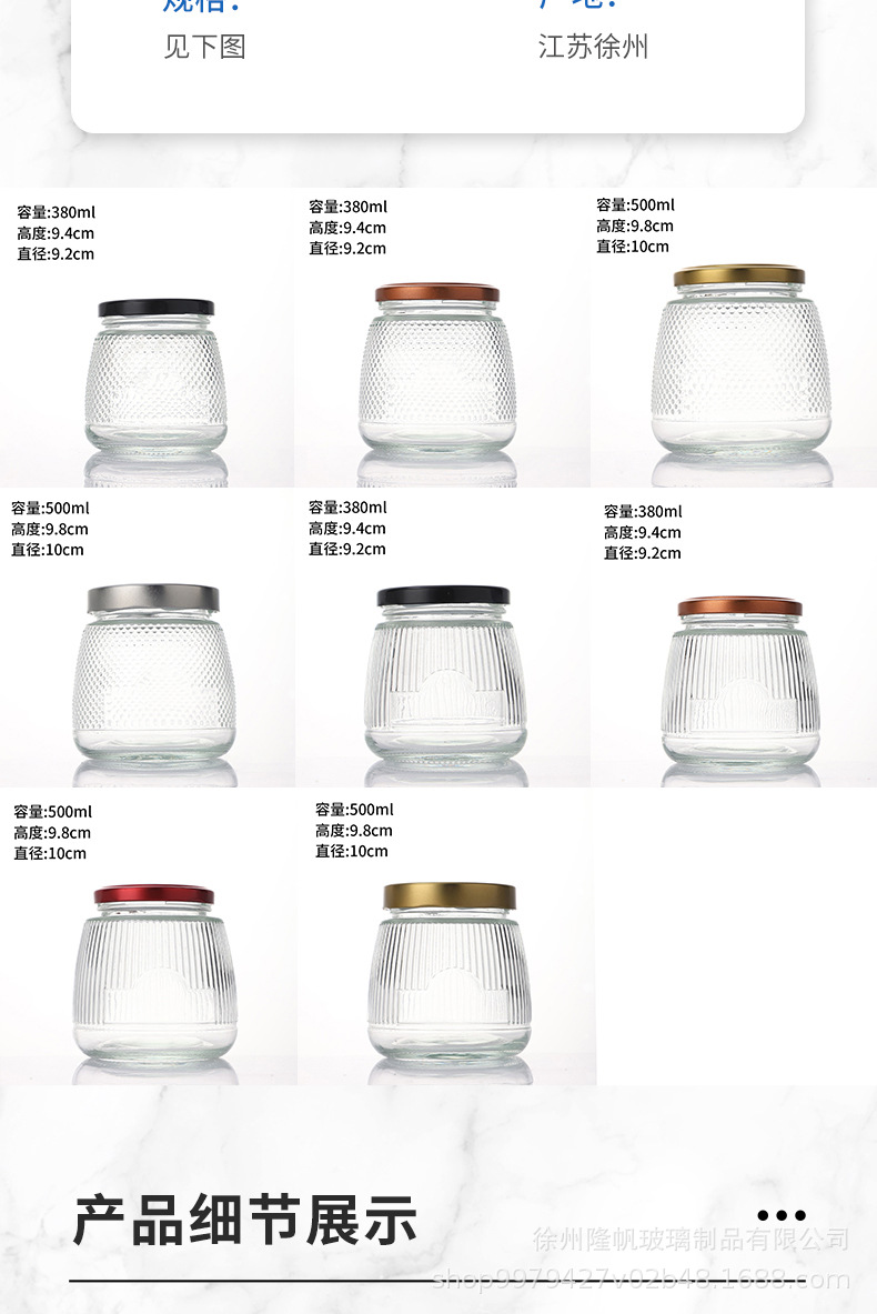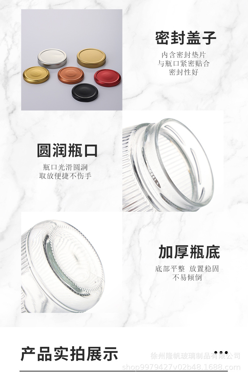 卸売り高蓋直筒密封ガラス味噌汁瓶ジャム唐辛子味噌汁瓶家庭用透明蜂蜜瓶ゴマ味噌汁瓶