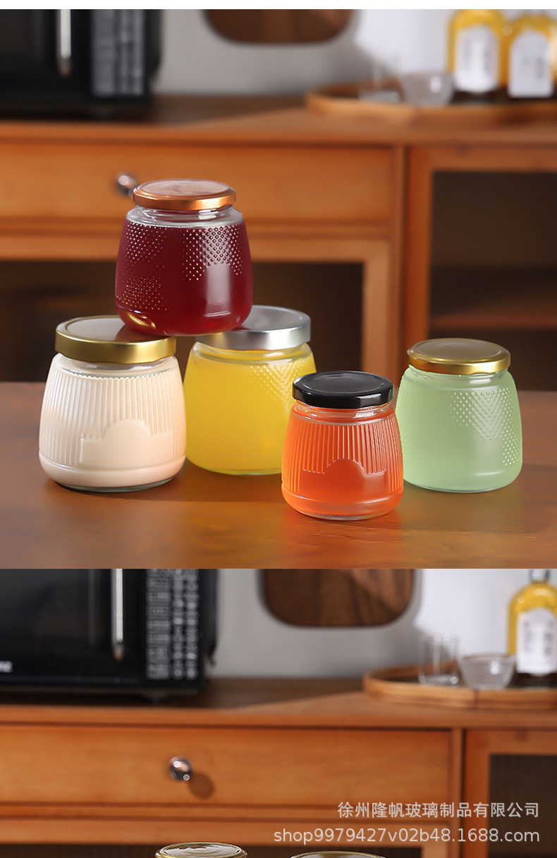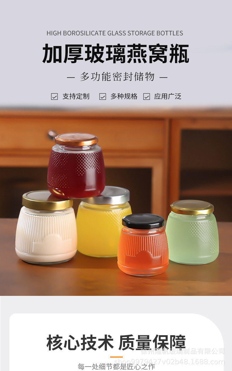 現品のガラスのツバメの巣は瓶を分けて蒸して花のゴムの蜂蜜の冷凍の乳を煮て厚い密封の新鮮な煮込みのジャムのガラスの缶を煮ることができます。