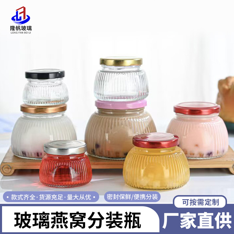 高温耐性のある花膠密封瓶、燕窩分装瓶、蒸し調理可能なガラス製魚膠空瓶、専用小容量