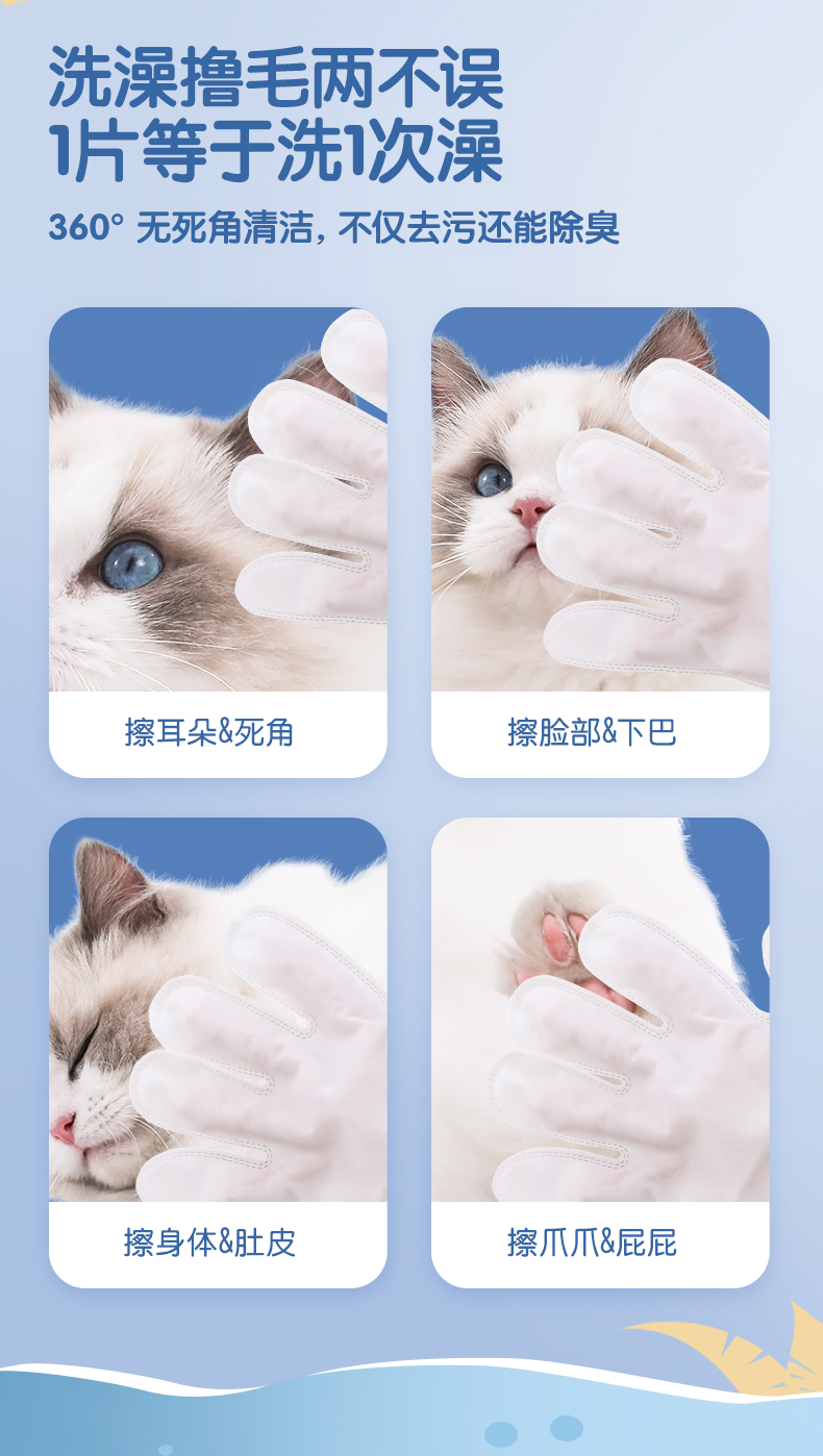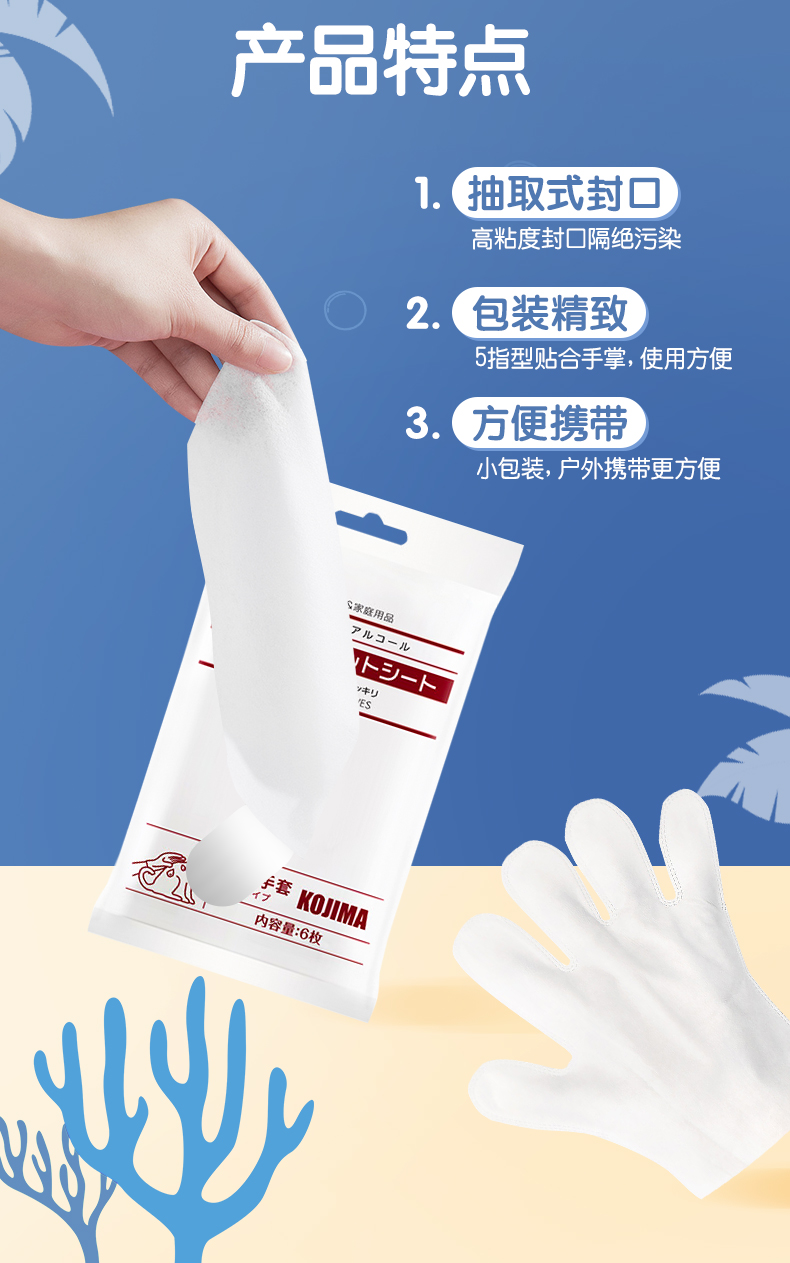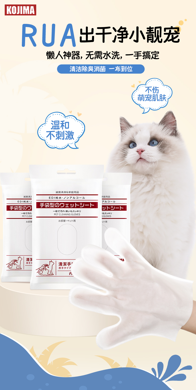 【品名】:KOJIMA宠物免洗手套湿巾6片装/宠物免洗手套(生打椰香/青梅绿茶/白桃乌龙/樱井梅子)珍珠纹款8片