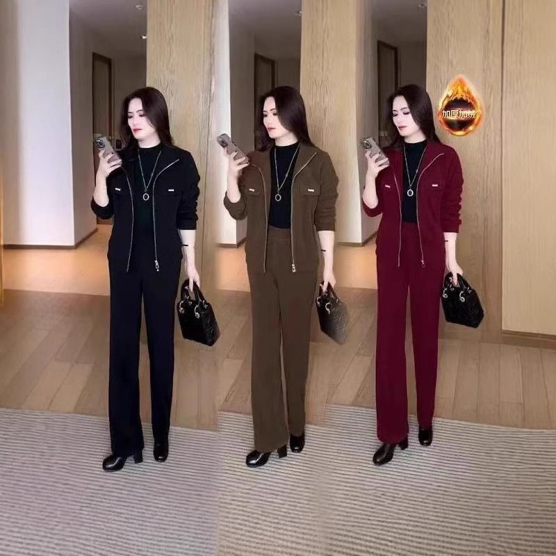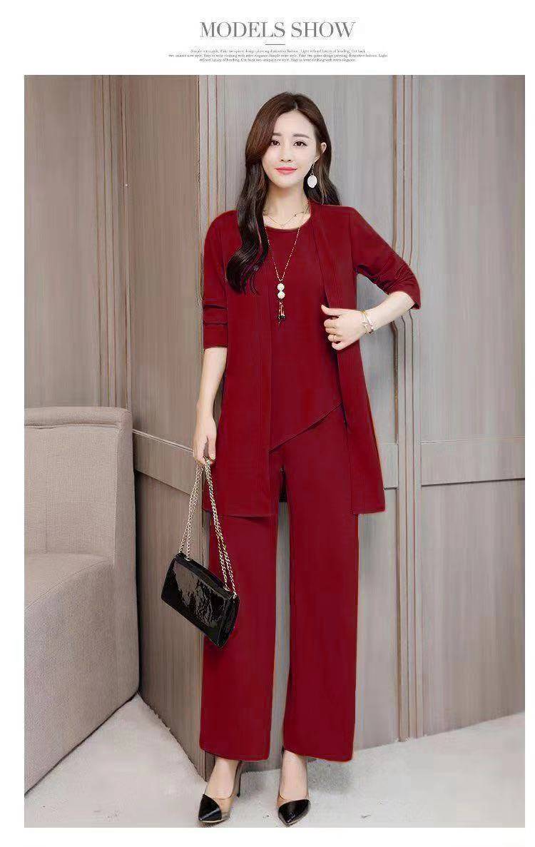 女性のためのファッションスーツ 2025 秋冬新作ハイエンド西洋スタイルワイドレディーススリムと年齢軽減プラスサイズの女性の 3 点セット