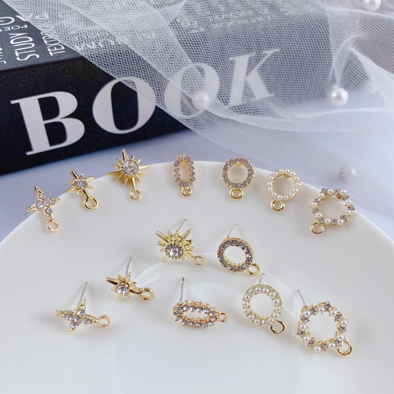 S925銀針にドリル真珠ピアス幾何学十字楕円円形ピアス部品DIYイヤリング手作り材料