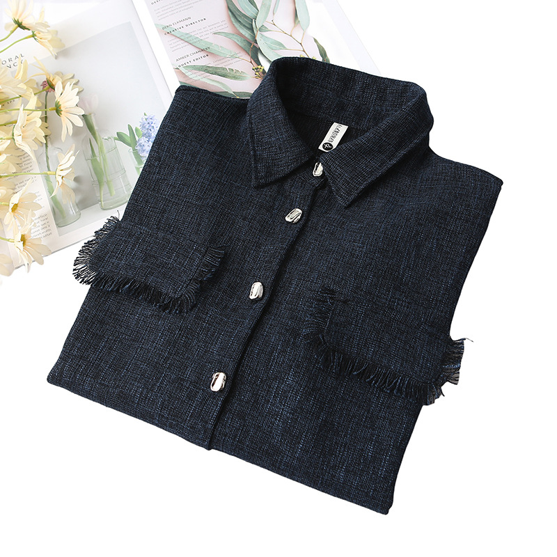 2024秋の小香風シャツのコートの大きいサイズの婦人服はやせている気質のカーディガンの太っているMMのファッションのシャツの大衆6855を現します。
