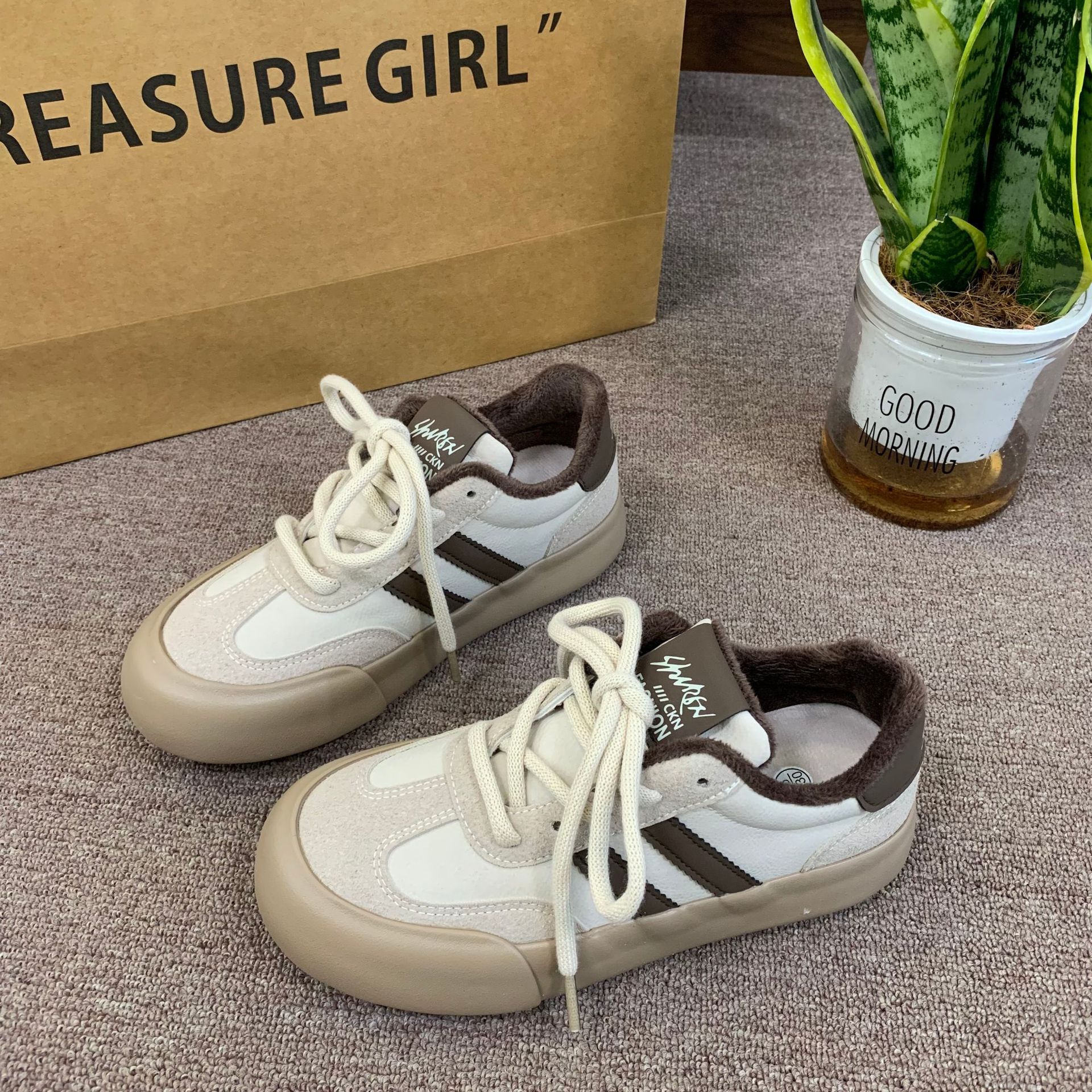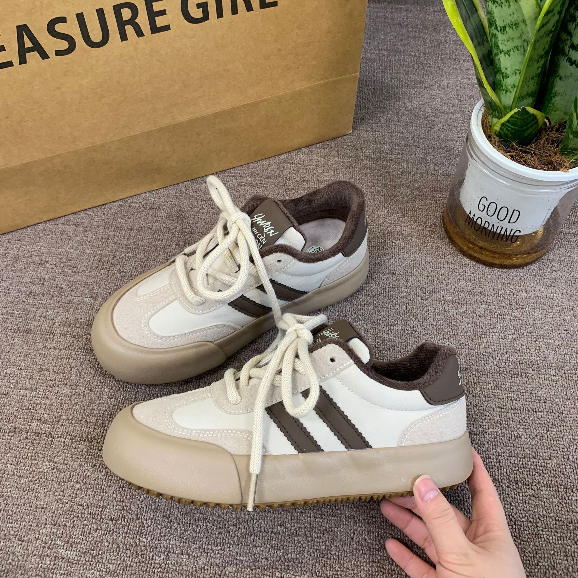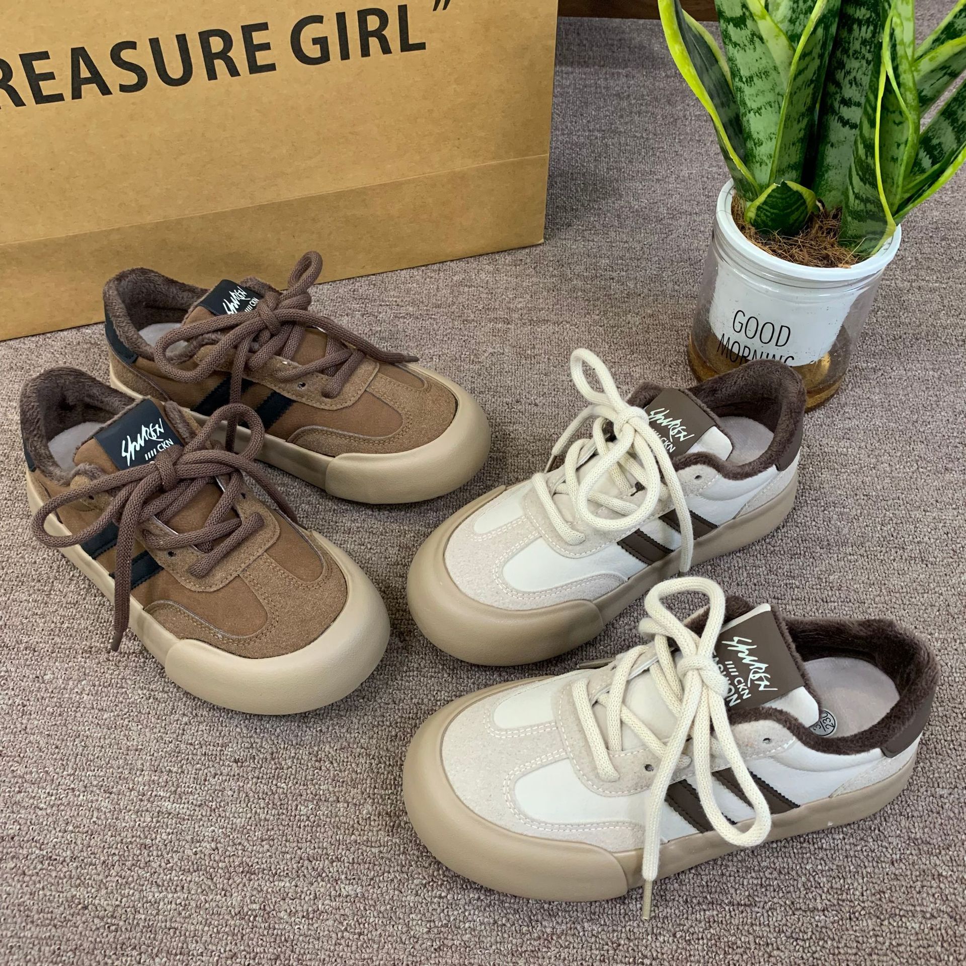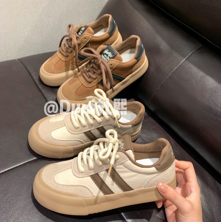 6354メイラードデュエントレーナーシューズ女性用2024年秋ローカット厚底ブラウンベージュカジュアルレトロ風