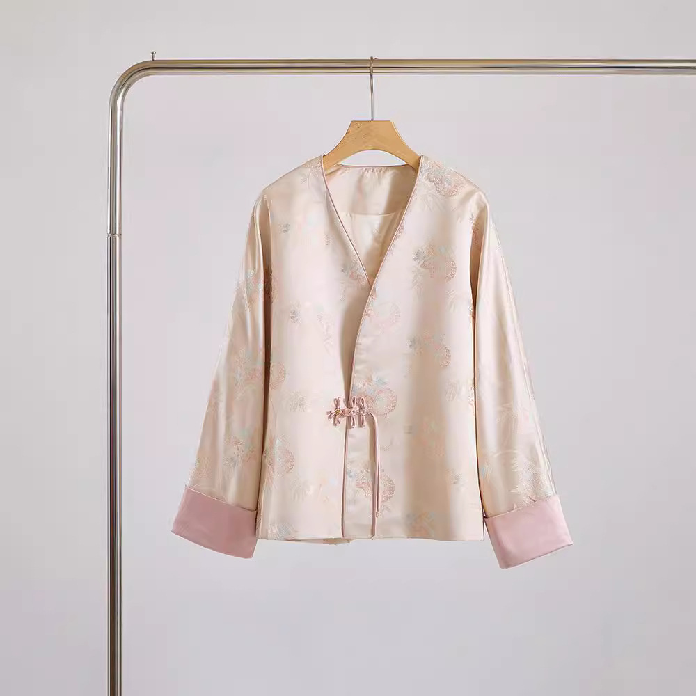 2025早秋款新中式国风提花双面可穿外套女立领拼接袖显瘦气质开衫