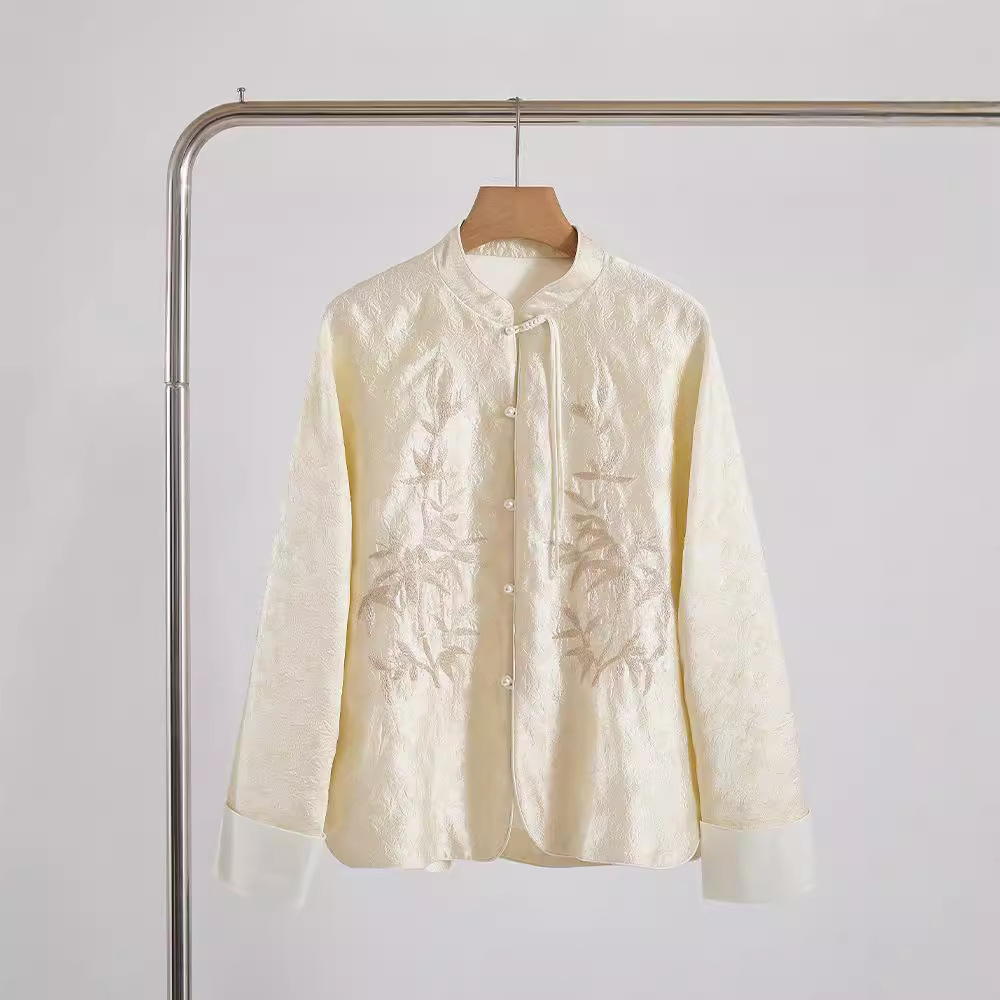 2024秋冬新作新中国式ベストシャツセット百合ジャカード女性上着禅意茶漢服唐服