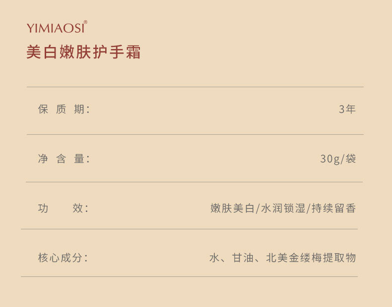 YIMIAOSI国風美白ハンドクリーム30g潤い保湿ハンドクリーム国化粧特証工場卸売り