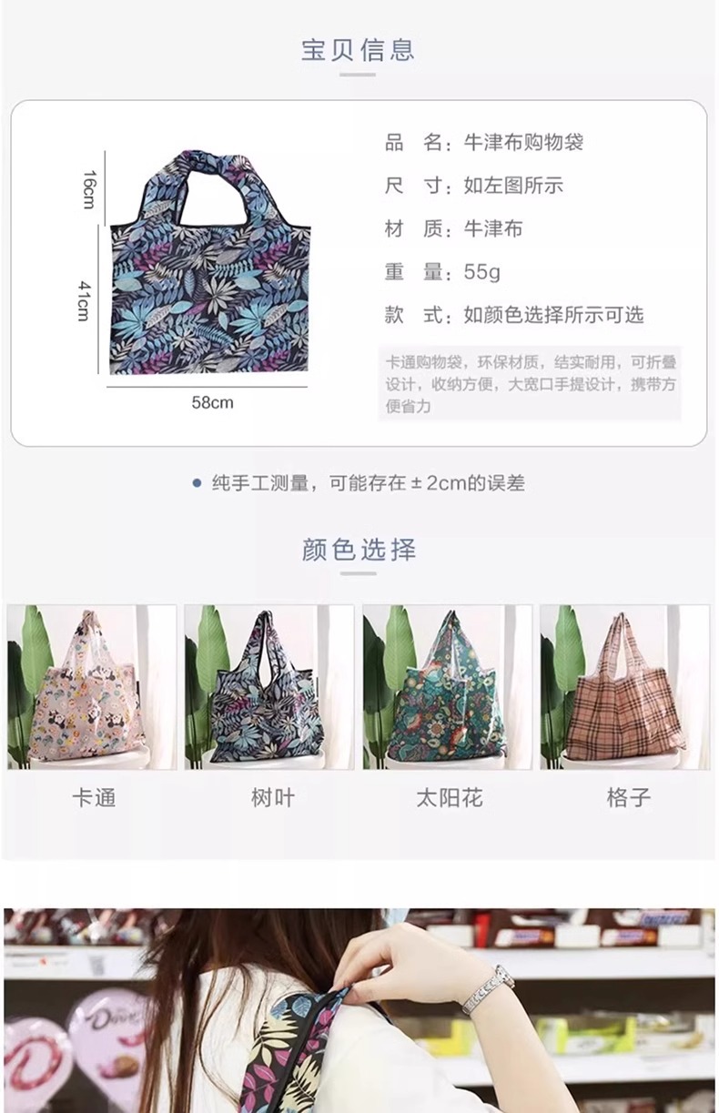 スポット大花柄布 210D オックスフォード布折りたたみショッピングバッグ大容量ポータブルスーパーマーケット食料品バッグプリントロゴ