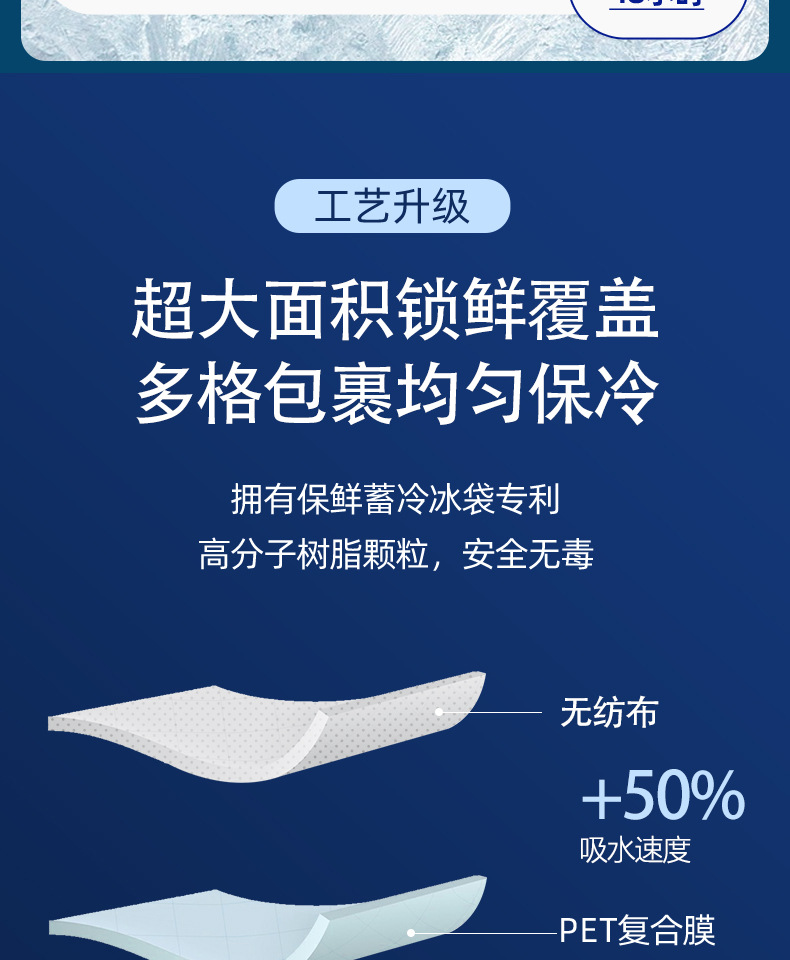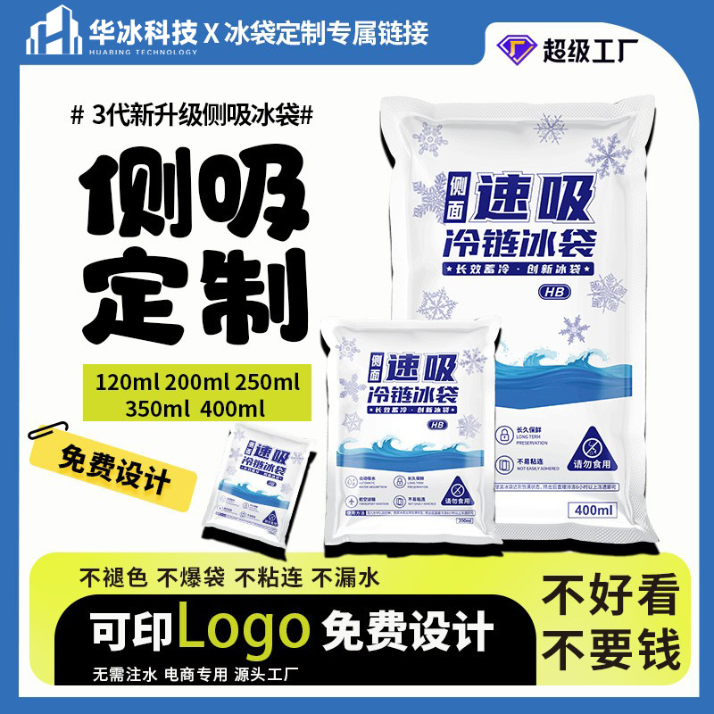 側面吸水両面自己吸水式使い捨て鮮度保持エクスプレス配送専用無水生鮮食品航空用保冷剤小型保冷袋