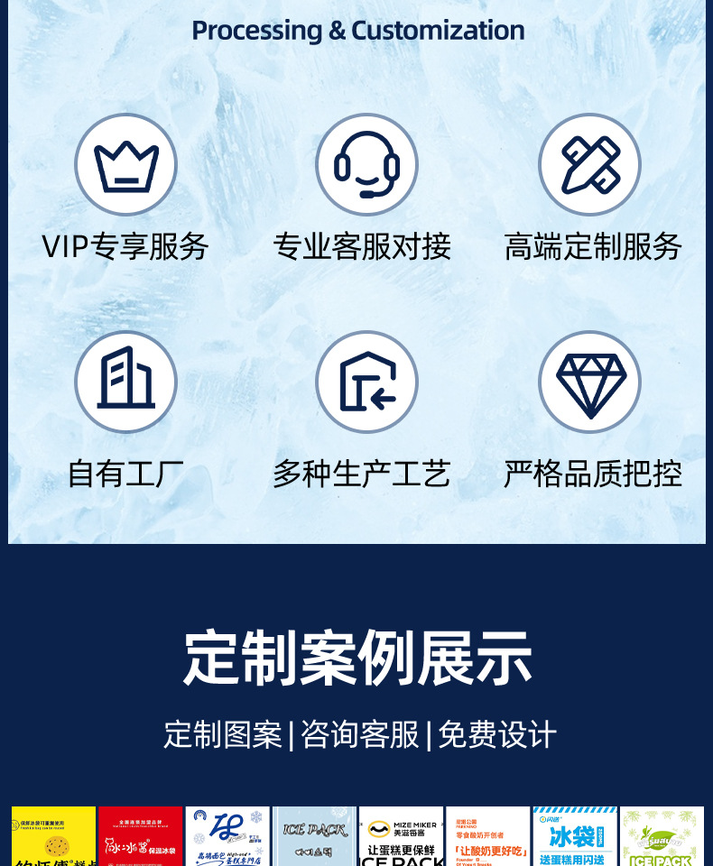 自己吸水性エクスプレス特殊冷凍アイスバッグ加工カスタマイズ印刷可能なパターン繰り返し使用鮮度保持冷蔵アイスバッグ