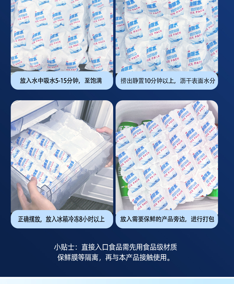 自己吸水式保冷剤卸売 使い捨て 無水注入式 鮮度保持 冷蔵 配送専用 生鮮食品 航空用小型保冷剤