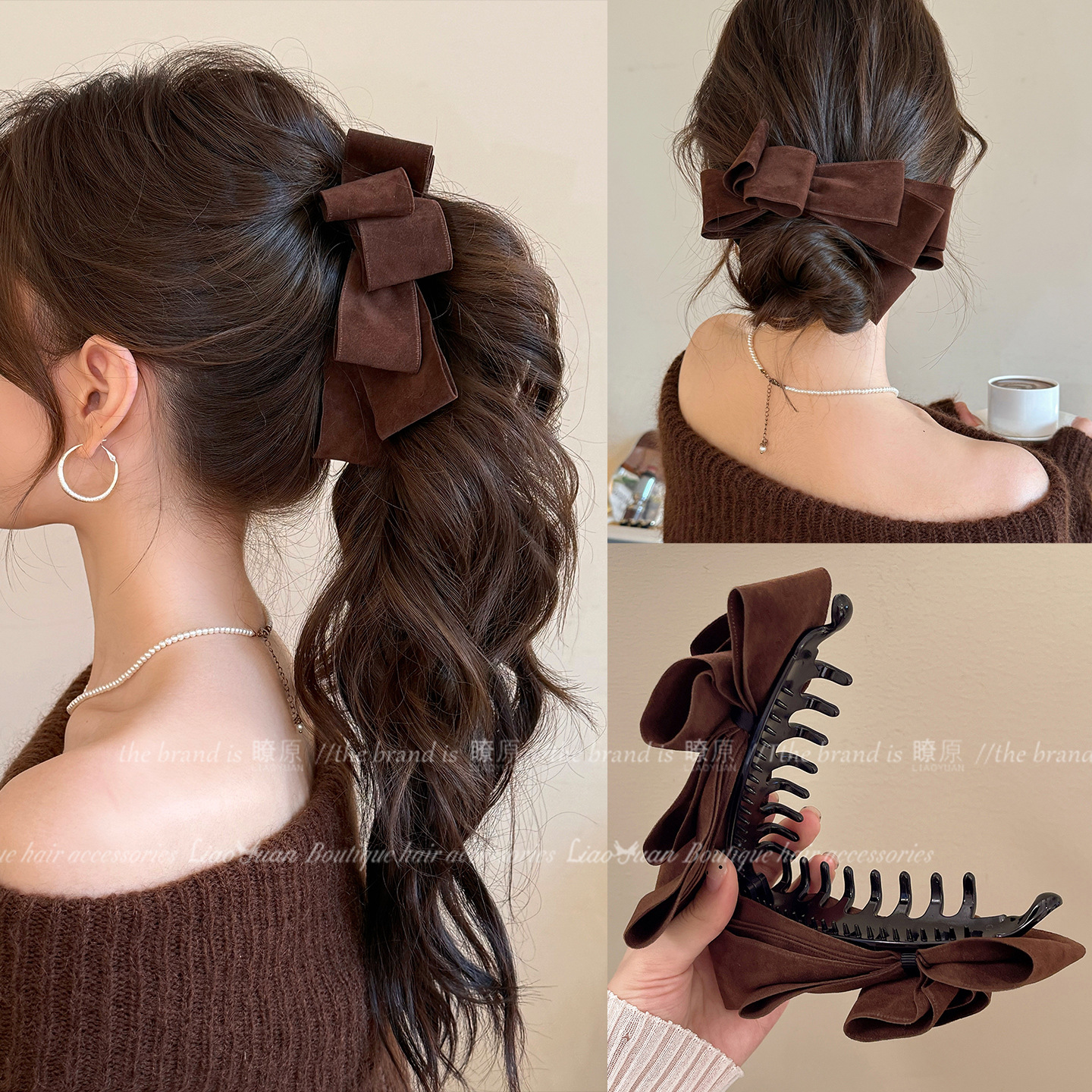 秋冬毛糸蝶結び高級感クリップ女2024新型後頭部ヘアピン気質優雅サメクリップ