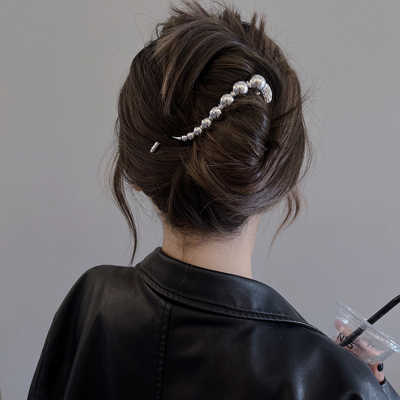 Insシンプルで冷たい風ヘアピンカエルクリップ高級感後頭部盤髪ねじりクリップ大髪飾りカード