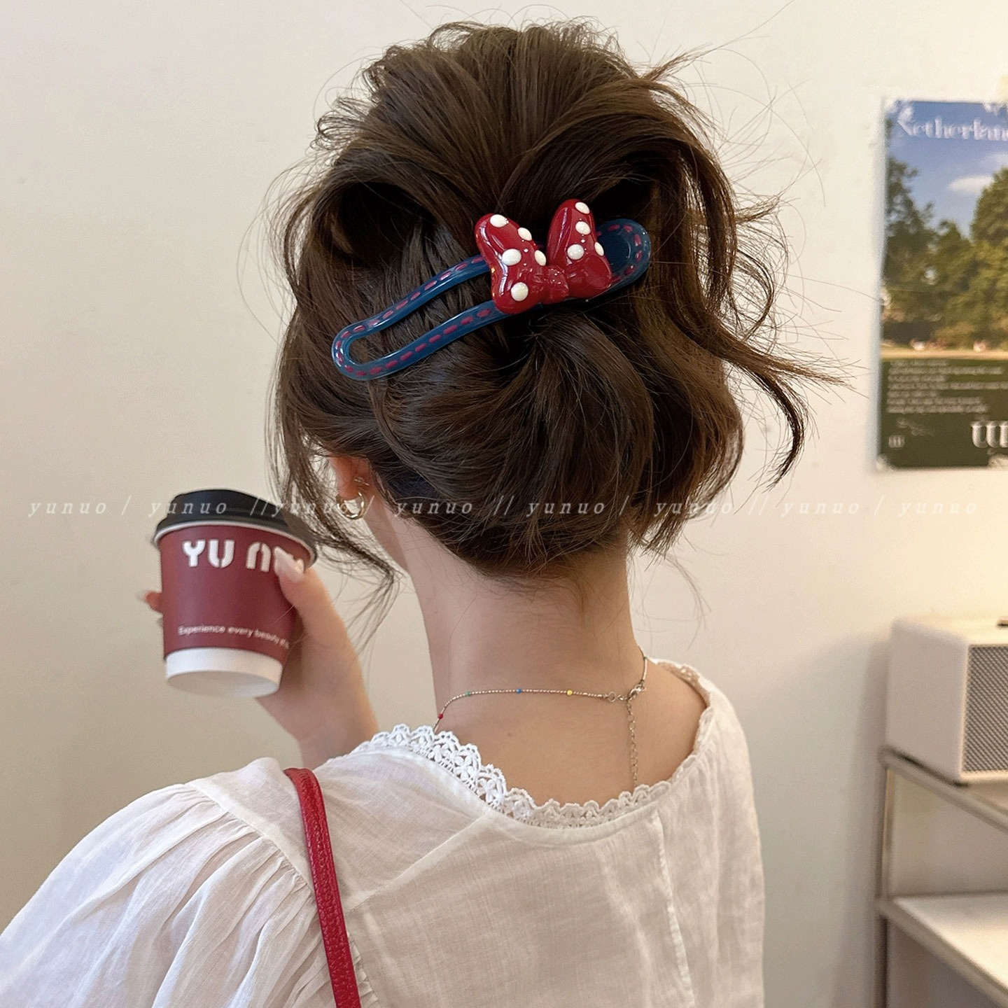 法式百搭红色蝴蝶结鸭嘴夹女高级感一字发夹后脑勺盘发抓夹发饰