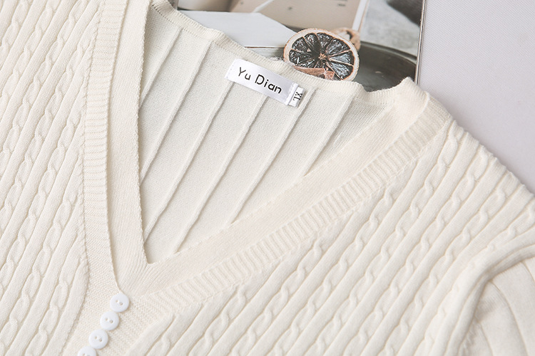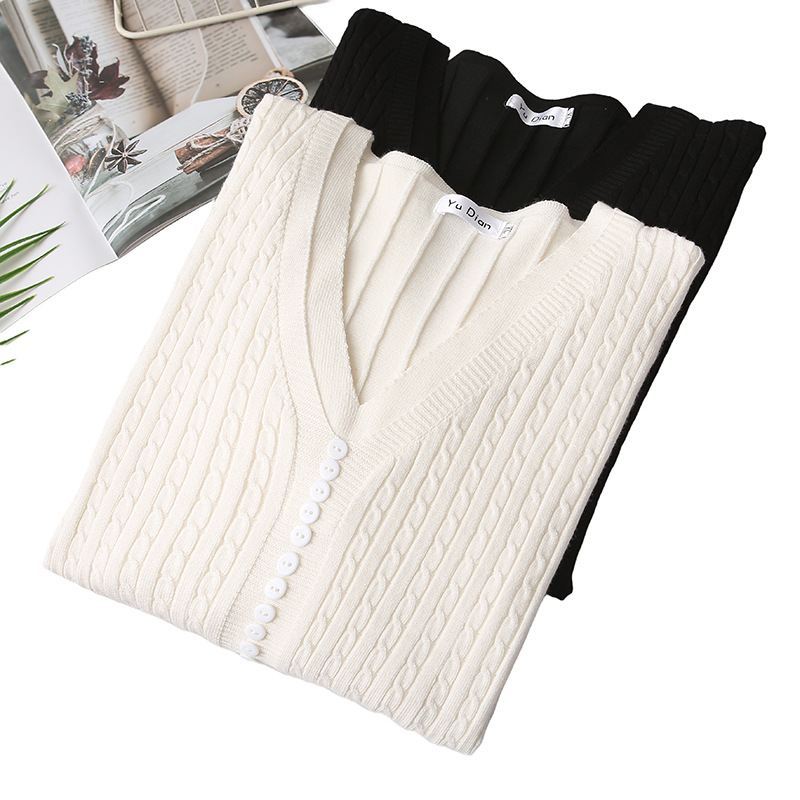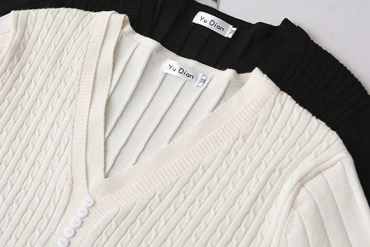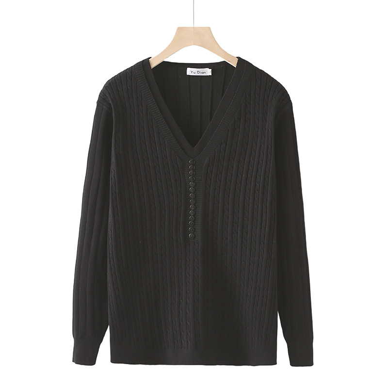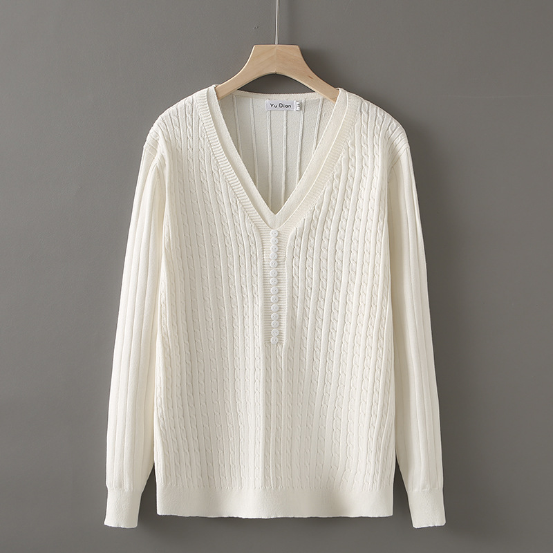 2024秋太った妹のニットウェアvネック長袖200斤弾力上着太ったMMシンプルなセーター気質2430