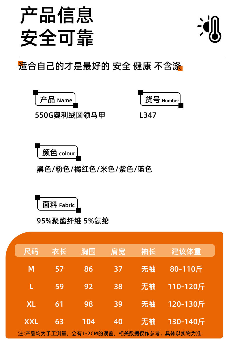 女款立领奥利时尚百搭绒马甲550克加绒加厚保暖亲肤背心上衣E260