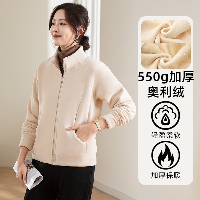 550g秋冬新款彩色加厚奥利绒拼接拉链长袖休闲百搭外套L349