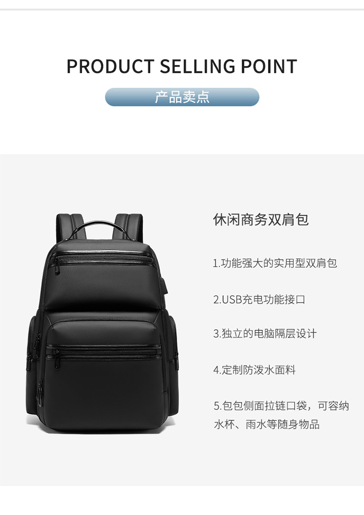 リュックサックメンズ高级感ビジネスパソコンバッグオックスフォード布大容量出张旅行カバン印刷可能ロゴ