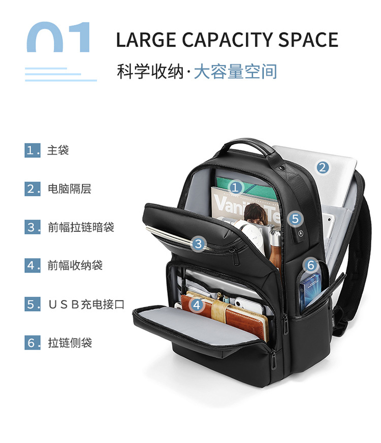 広州バッグメンズリュックサック高级感出张旅行多机能ビジネスパソコンバッグ真空圧縮リュックサック
