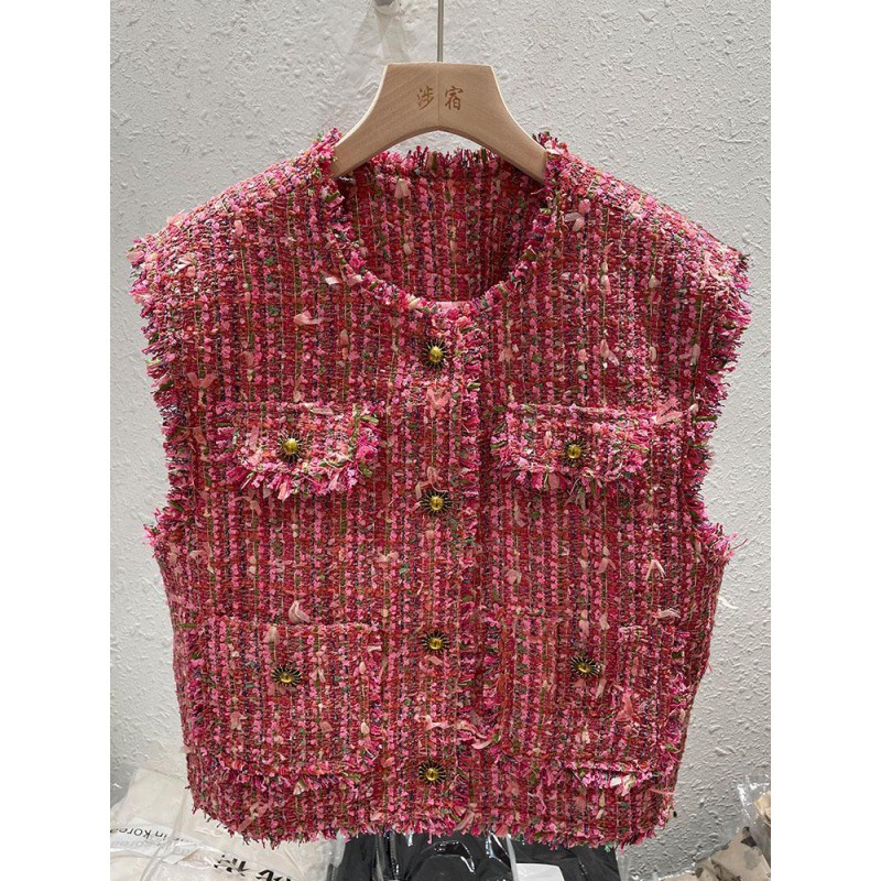 黒いスーツのベストの女性の夏の2024の新型の韓国版のファッションはシフォンの木の耳の縁の肩の中の長い馬の挟みをつなぎ合わせます。