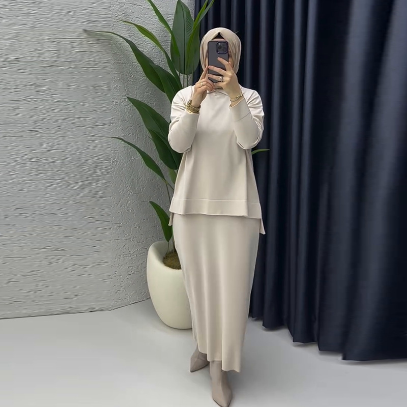 2025新型アマゾン欧米国境を越えた対外貿易ニット長袖分叉ゆるいカジュアルで怠惰な純色2点セット