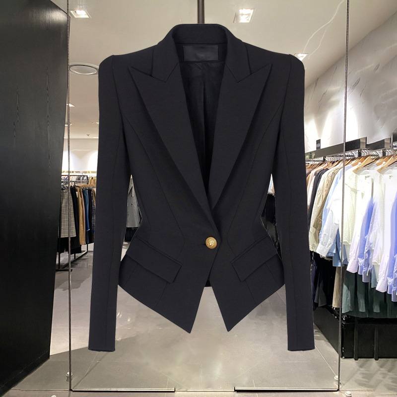 韓国版修身シンプル通勤小スーツコート一粒バックル2025年夏新作