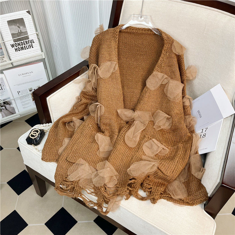 マントのマントのセーターのオーバーのフリンジの秋冬のゆったりしたmmのニットのカーディガンの中の長い上着