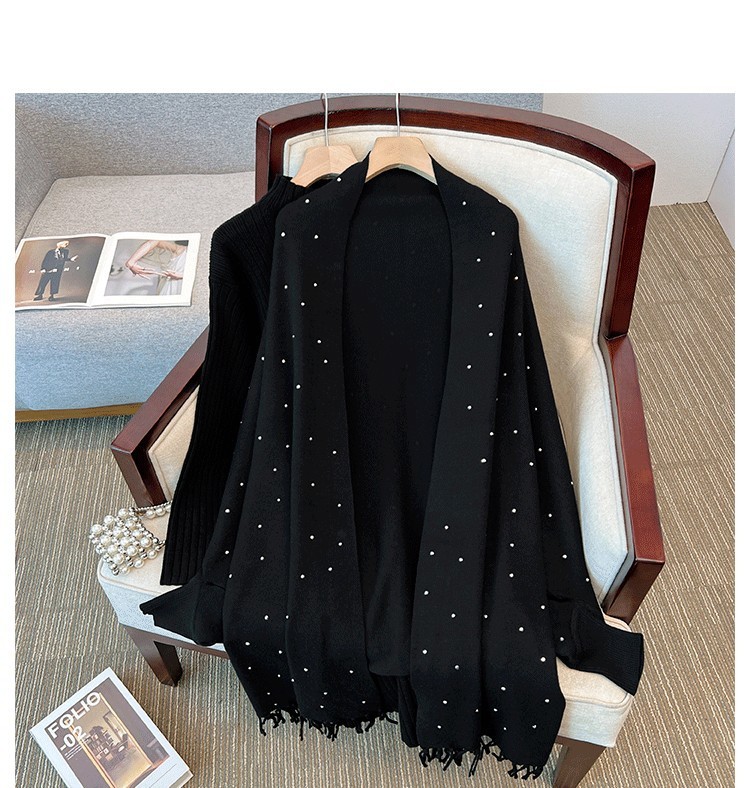 欧货重工亮片钉珠V领毛衣外套女秋冬新款慵懒风宽松长款针织开衫