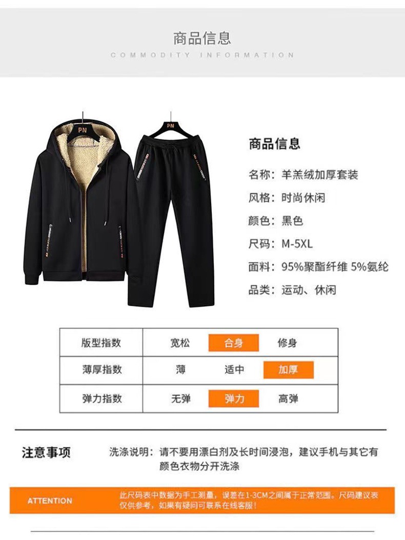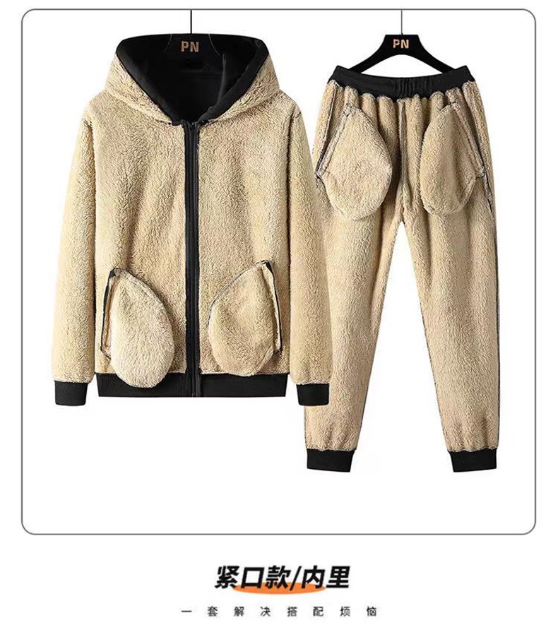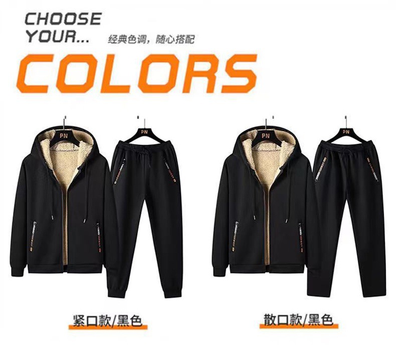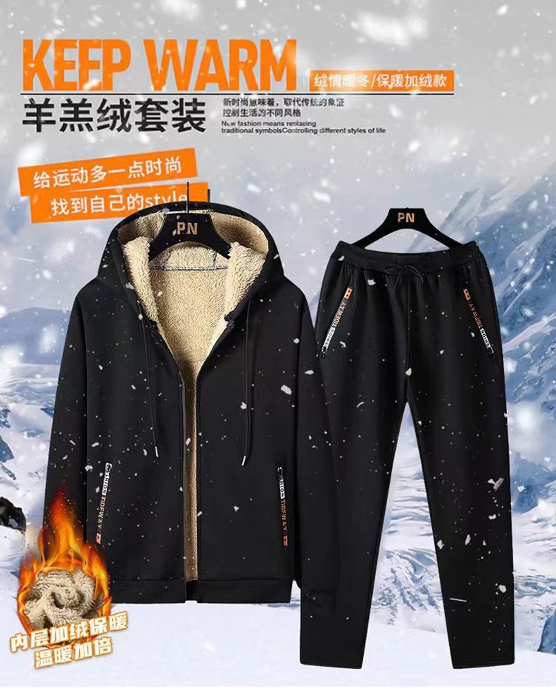 冬季加绒加厚羊羔绒外套休闲运动套装男士潮流衣服裤子大码男套装