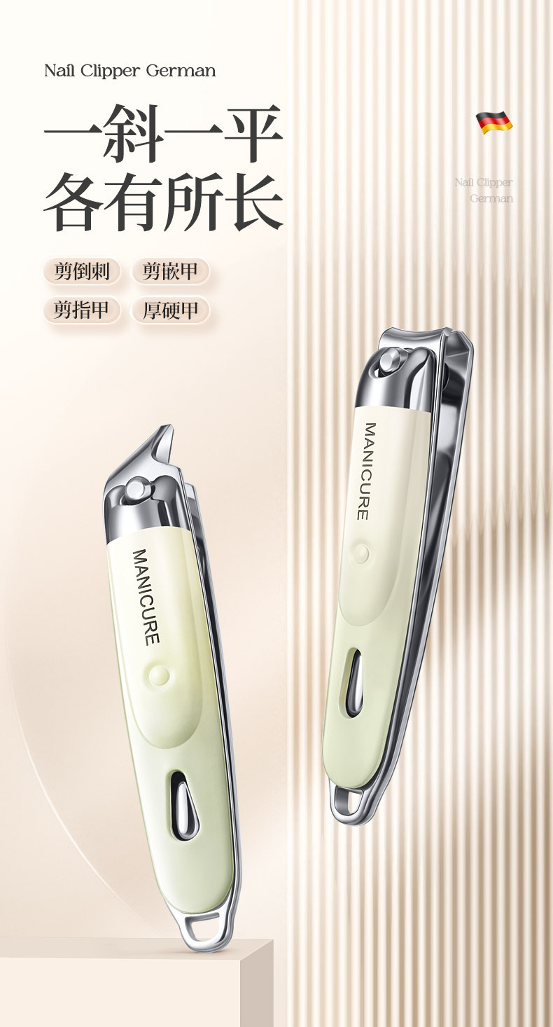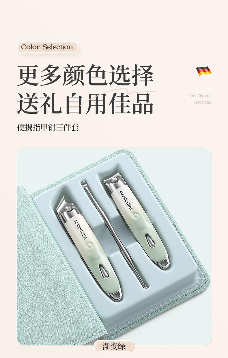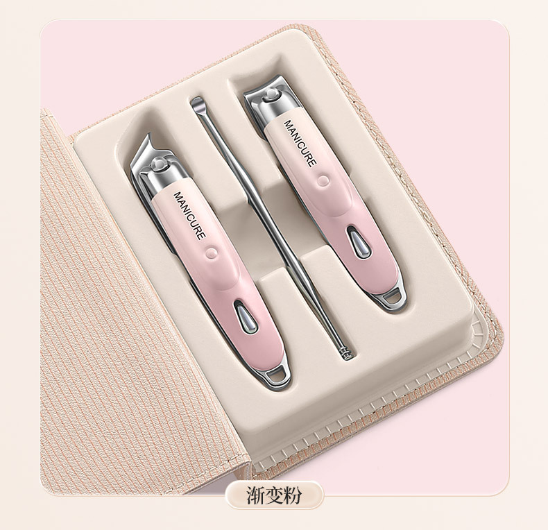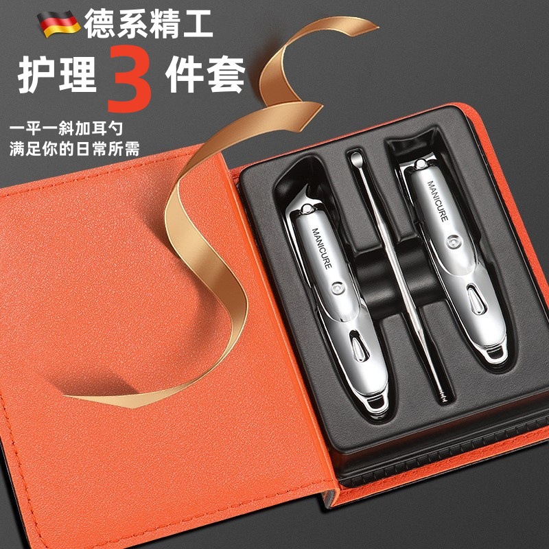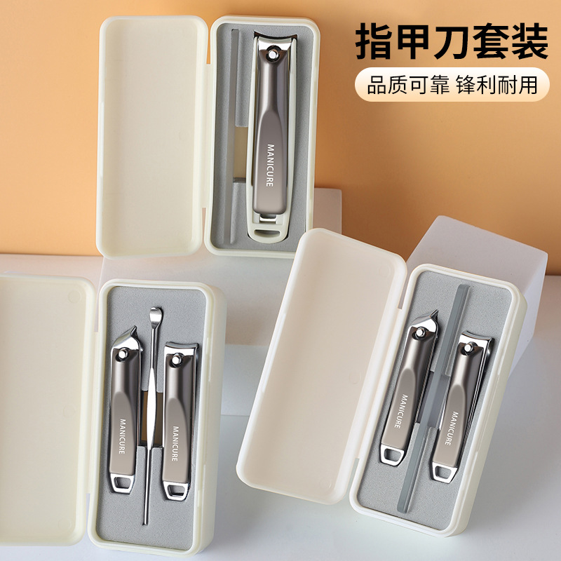 家用指甲钳套装平口斜口修甲指甲剪便携式不锈钢指甲刀耳勺三件套