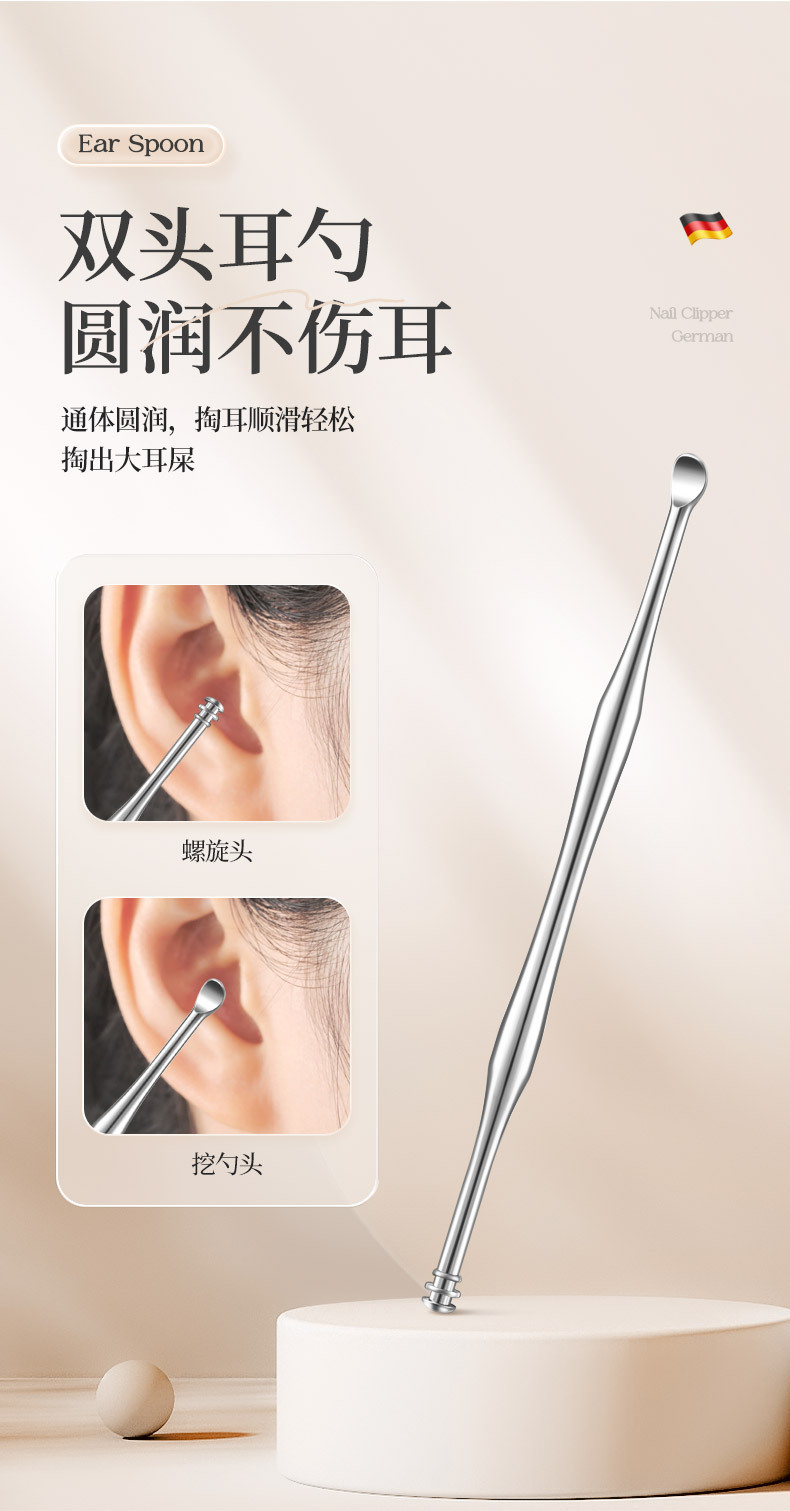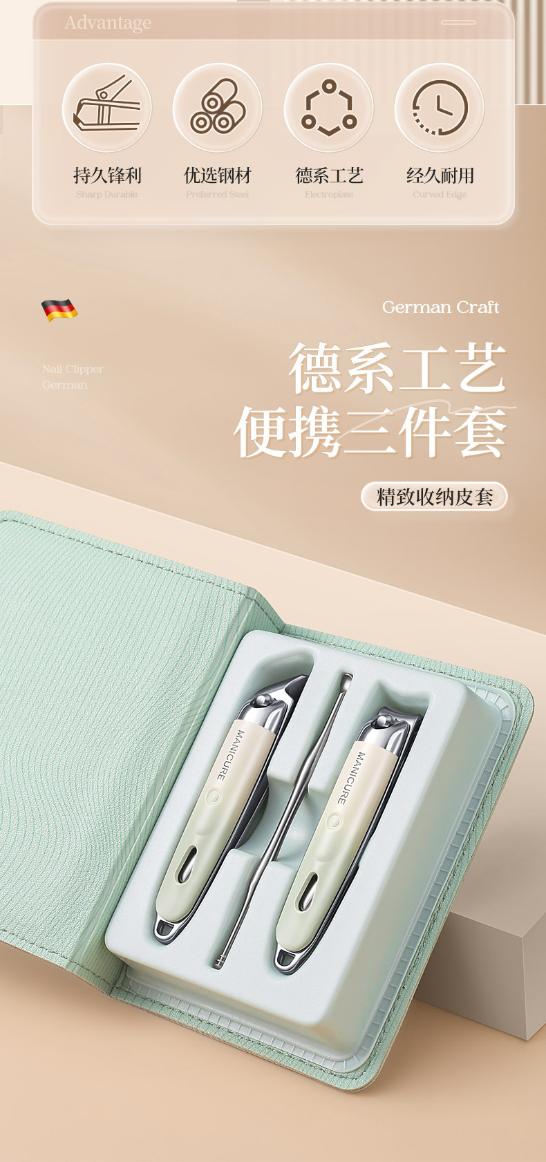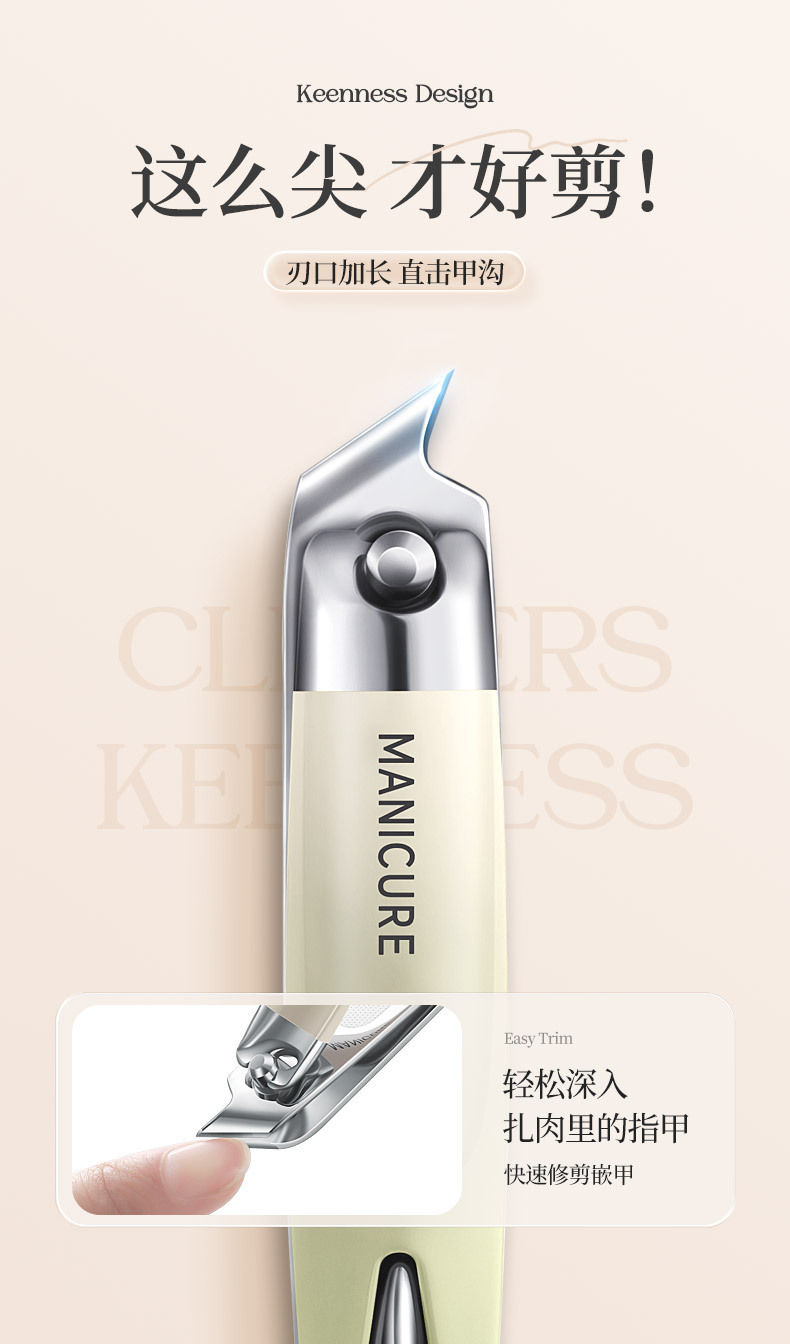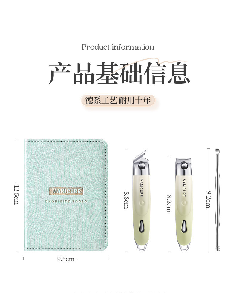 家用指甲钳套装平口斜口修甲指甲剪便携式不锈钢指甲刀耳勺三件套