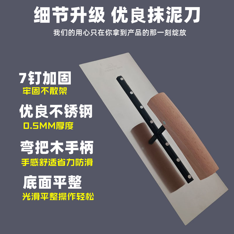 无钉抹子抹灰不锈钢抹泥刀加厚抹灰刀泥瓦工工具水泥砂浆保温推刀