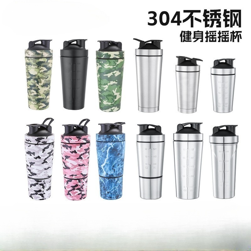 304ステンレス製フィットネスシェイクカップ、パウダーボックスと目盛り付き、二重構造ウォーターカップ、男女兼用スポーツミキシングカップ、プロテインパウダーカップ