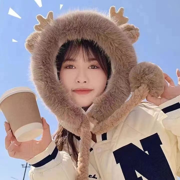 帽子の女性の冬のかわいい日本の韓国版の百合鹿の角の耳の厚い毛の保温の耳の雷鋒の毛糸の帽子