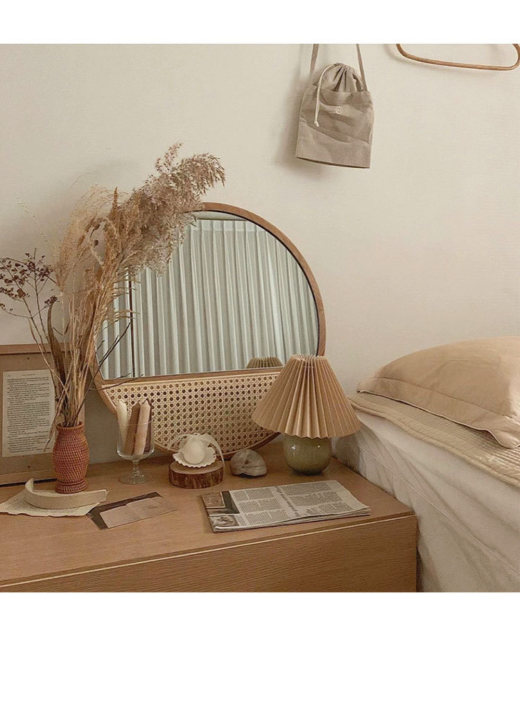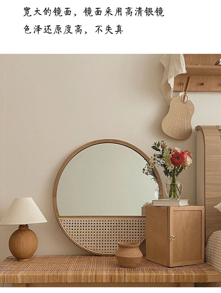 ラウンドレトロins风藤编み镜デスクトップ手作り竹编み挂け镜玄関民宿化粧镜壁饰り镜