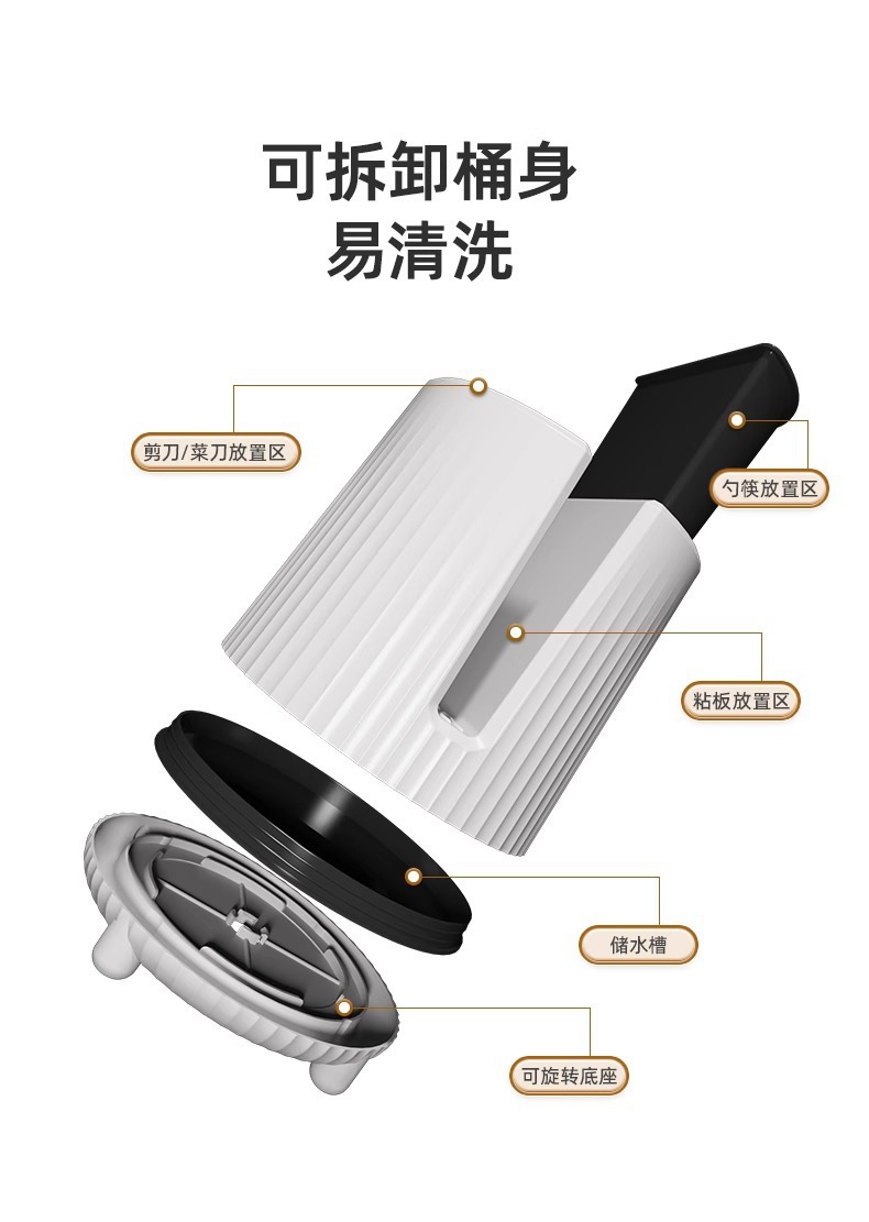 筷筒多功能厨房旋转收纳置物架家用收纳架刀具筷子沥水一体收纳盒