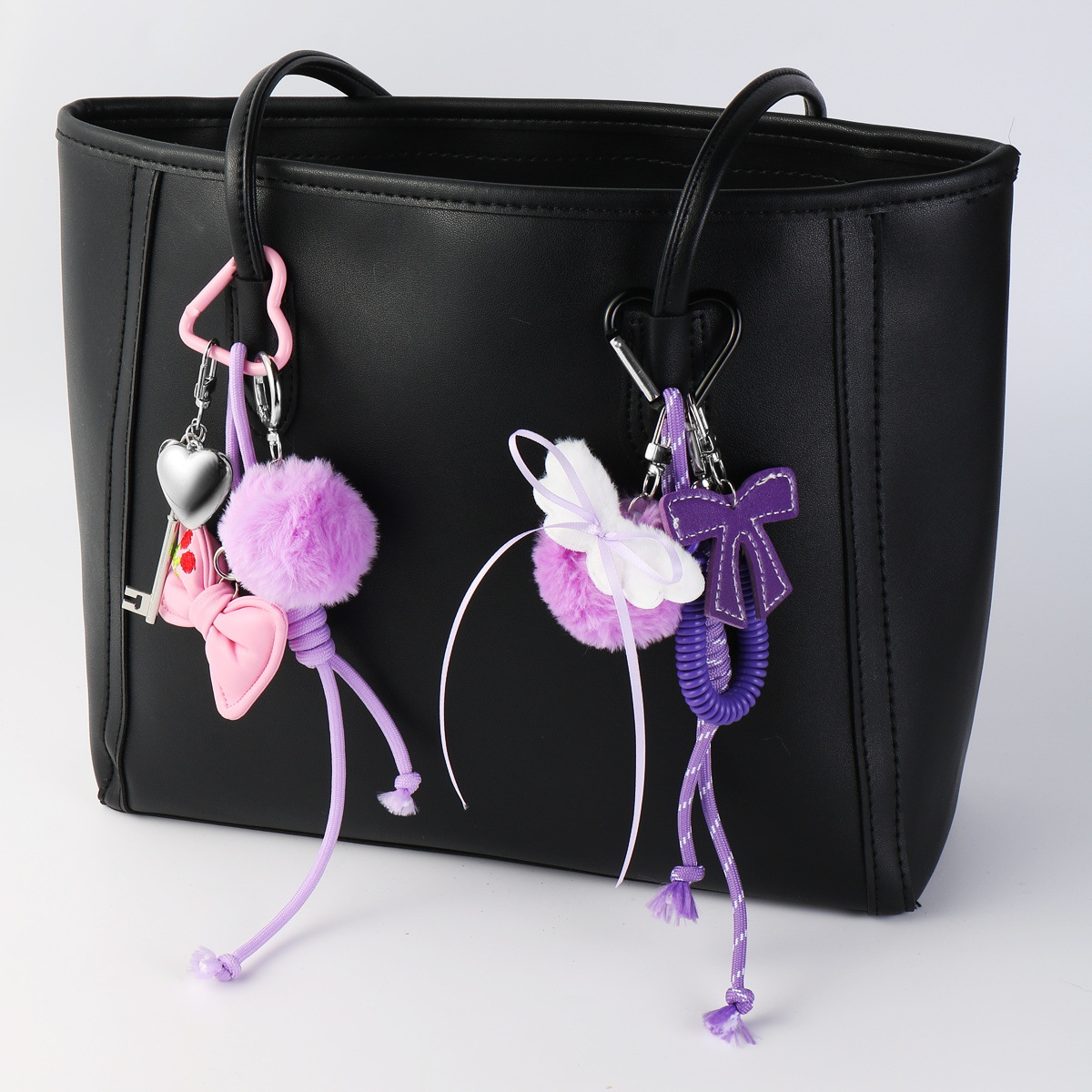 クロスボーダー爆金insトレンド甘いクール高颜値模造真珠毛玉蝶ネクタイ愛小包DIYキーホルダー