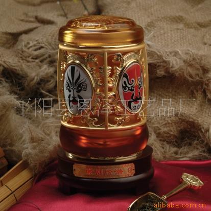 茶叶罐(笔筒)以中国传统名贵材质琉璃或玉石制作,风光部分以刻金属件镶嵌,精工细雕,栩栩如生。饰纹或雅菊惠兰,或花开富贵,镀24k金。整个产品既富有地方特色,有蕴涵传统文化,尊贵又不失高雅,是旅游纪念或馈赠亲有的理想产品