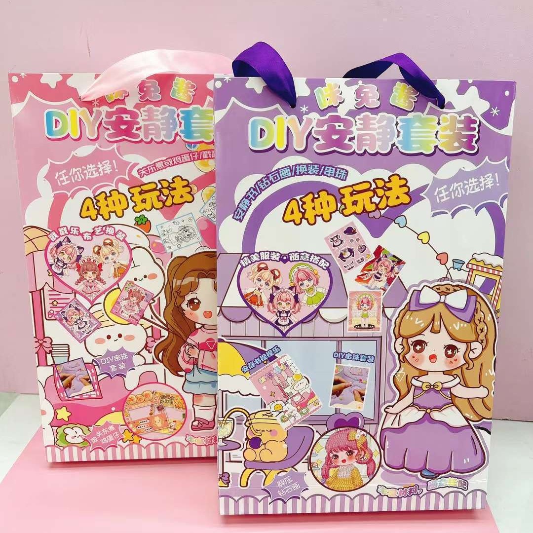 MLD-3802のミミのウサギの贈り物の箱の4種類のDIYの遊び方、ビーズのダイヤモンドの絵の静かな本のスタンプの楽しみの塗り絵があります。