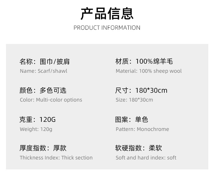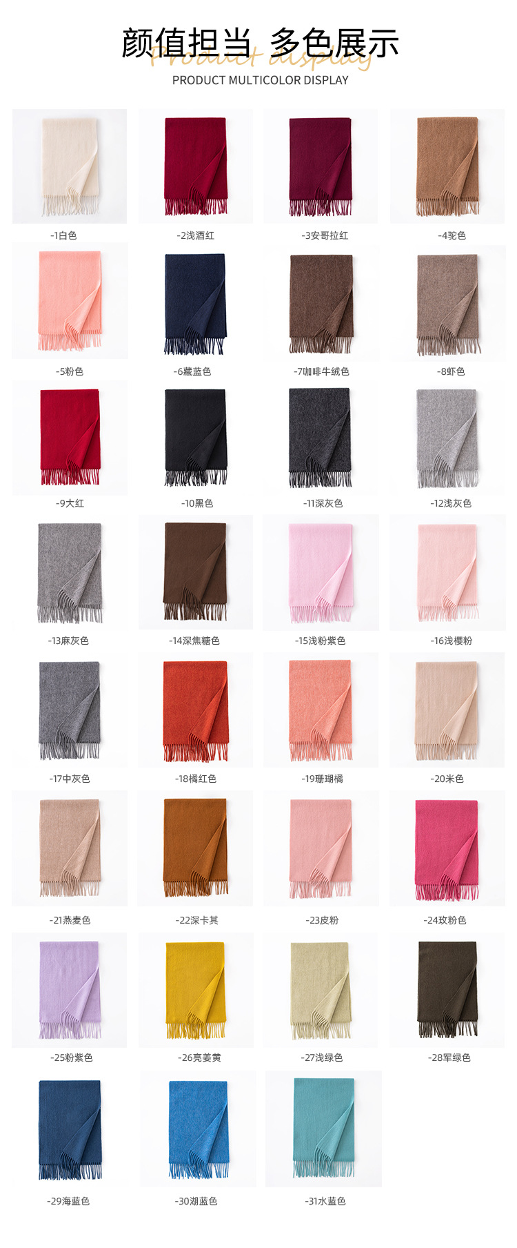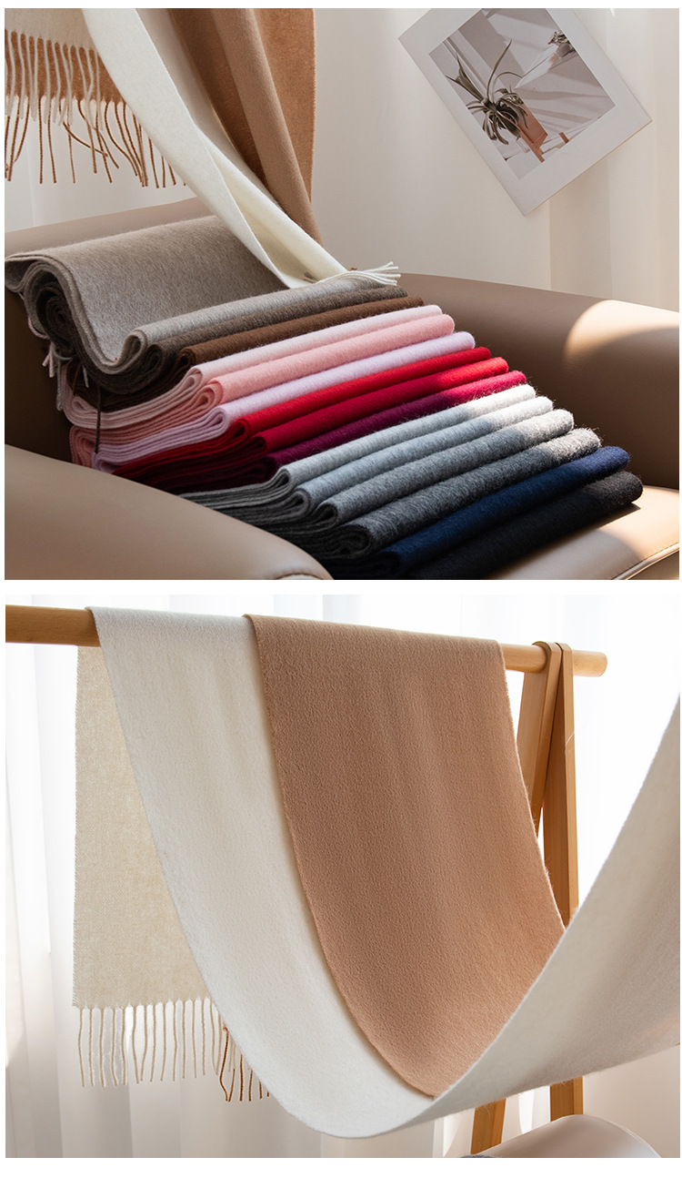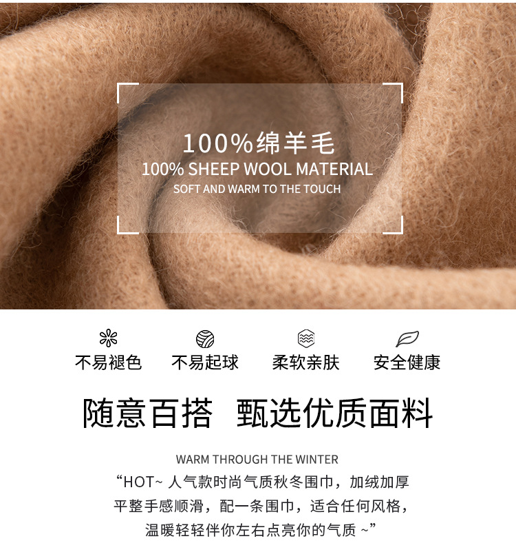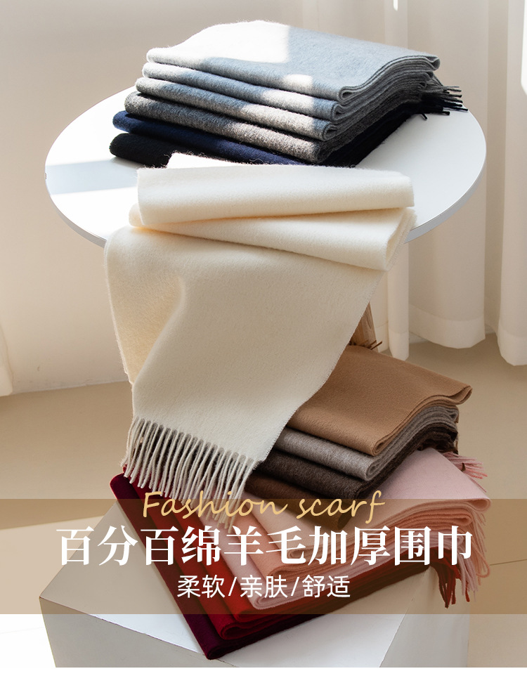 クロスボーダー無地100%ウールスカーフ レディース秋冬 高級感 厚手万能スカーフ メンズショール 卸売