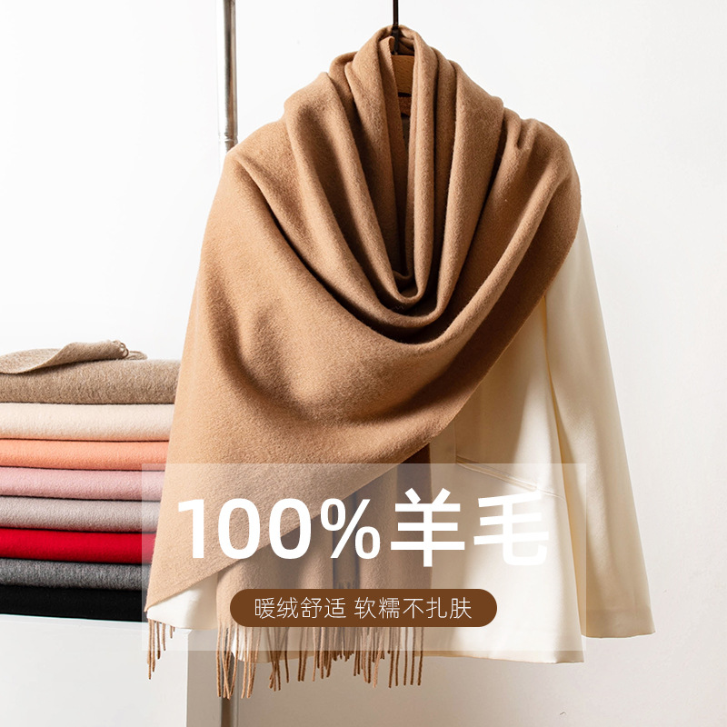 100%羊毛纯色围巾女高级感秋冬流苏保暖围脖时尚百搭简约长款披肩
