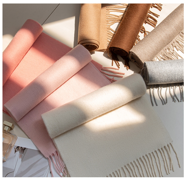 ウールスカーフ 100% 秋冬新ソリッドカラースカーフレディースオールマッチネックスカーフ厚く暖かいショールシンプルなタッセル