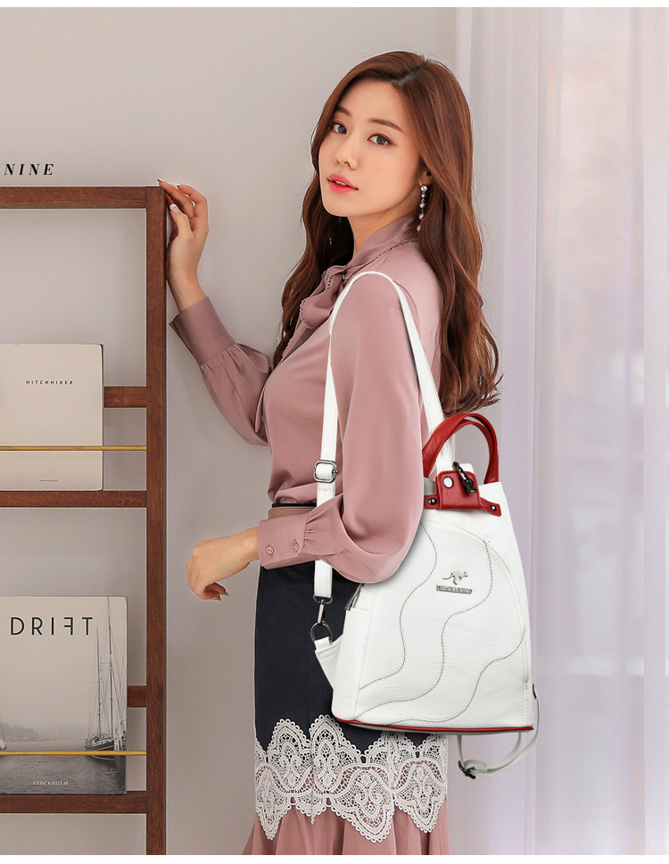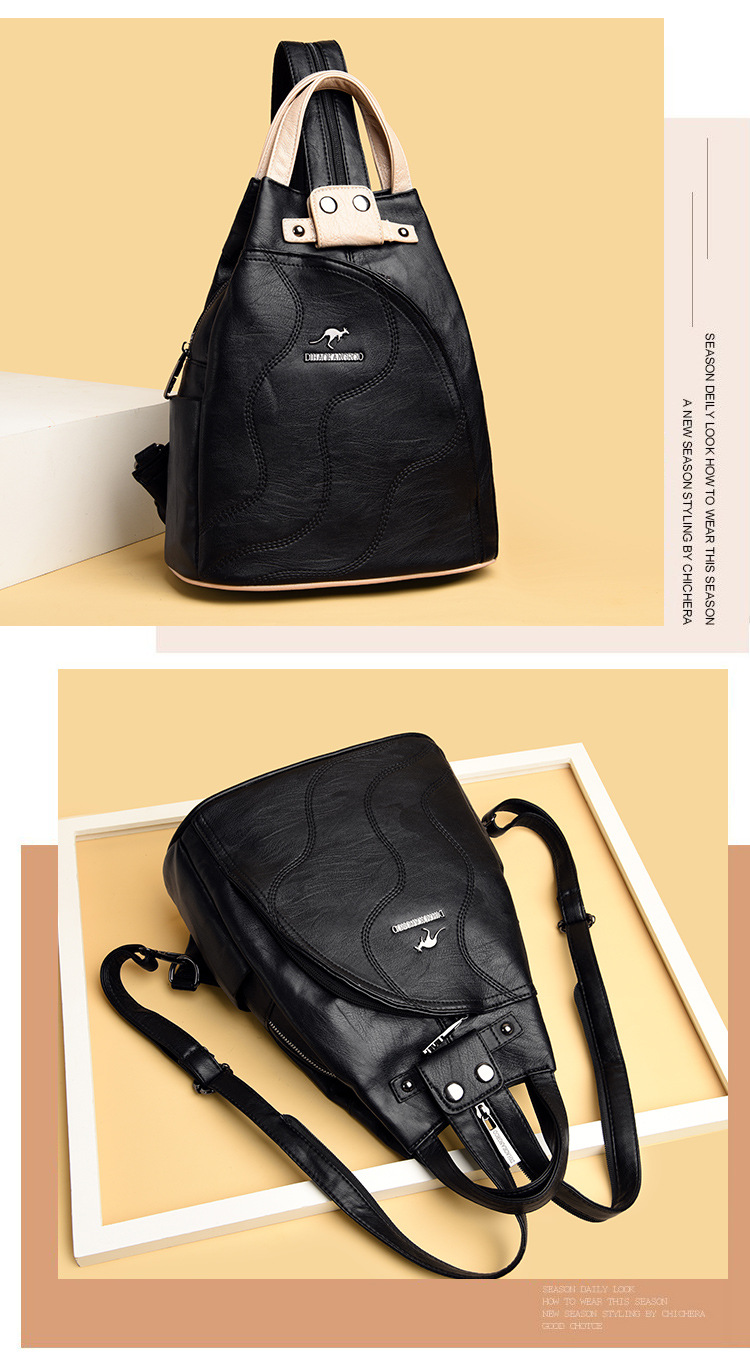 2024秋冬ファッションの新しい胸のバッグの女性のリュックサックの韓国版の縦型は女性のカバンのカジュアルな柔らかい皮の学生のリュックサックをつなぎ合わせます。