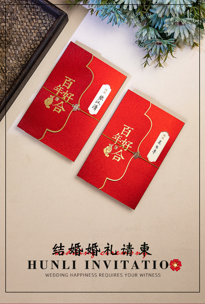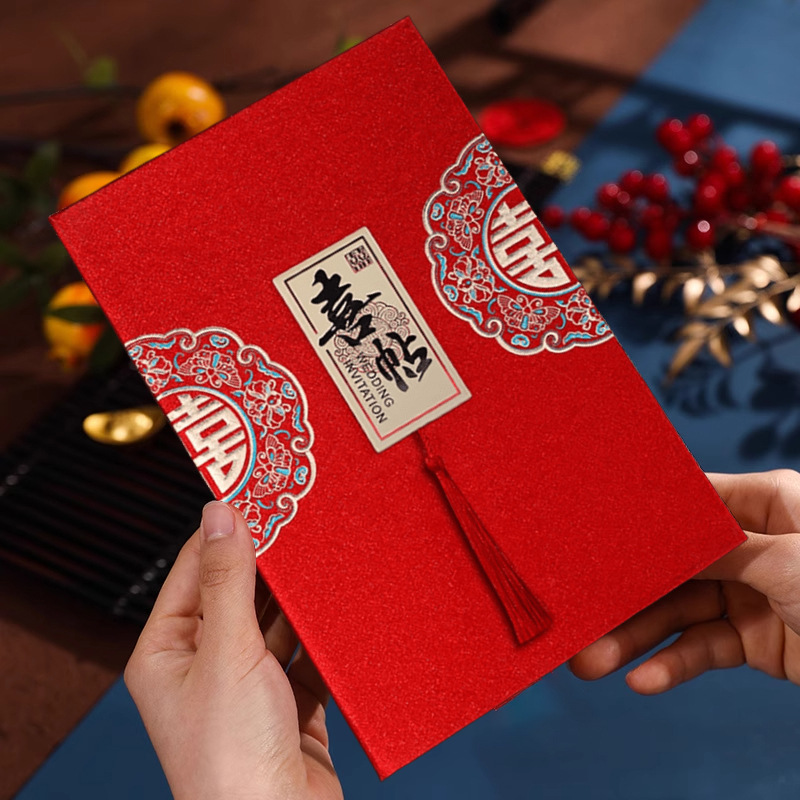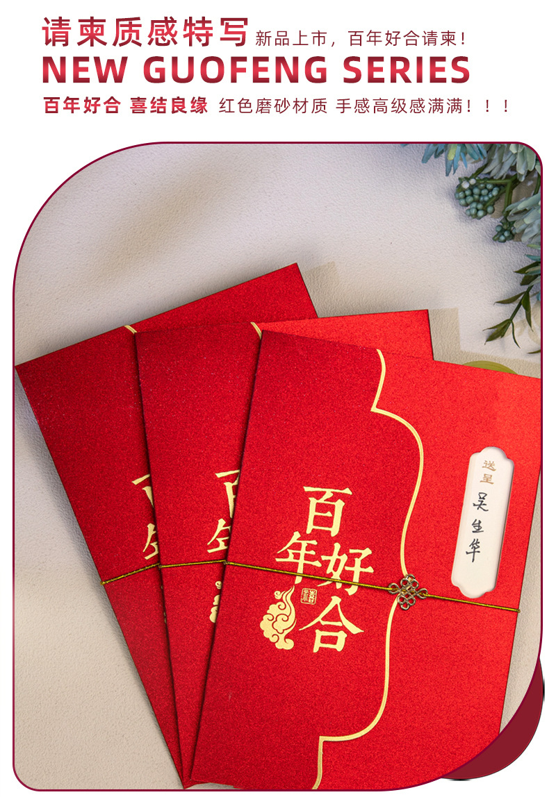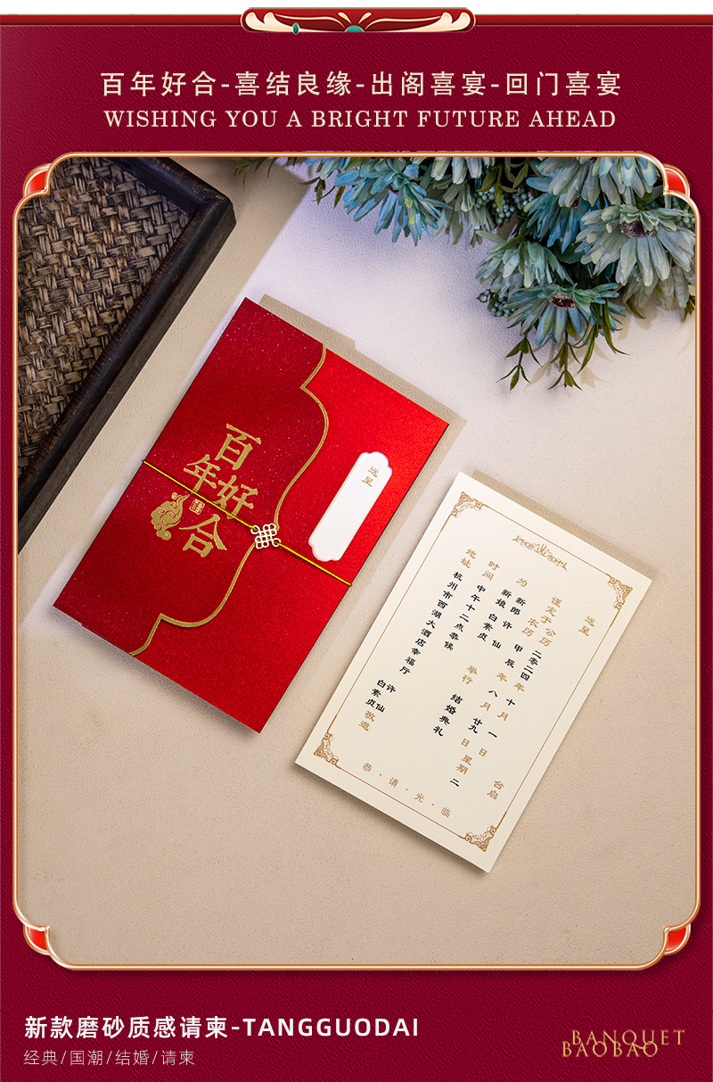2025年結婚式招待状、ウェディングクリエイティブ、個性的な中国風招待状、マット仕上げ、中国風招待状印刷卸売