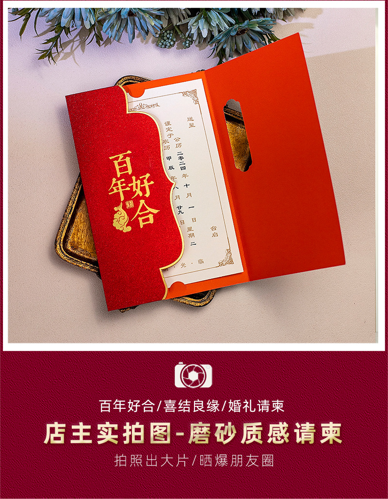 結婚招待状結婚式の招待状創意中国風招待状金葱フロスト2024新商品高級招待状印刷