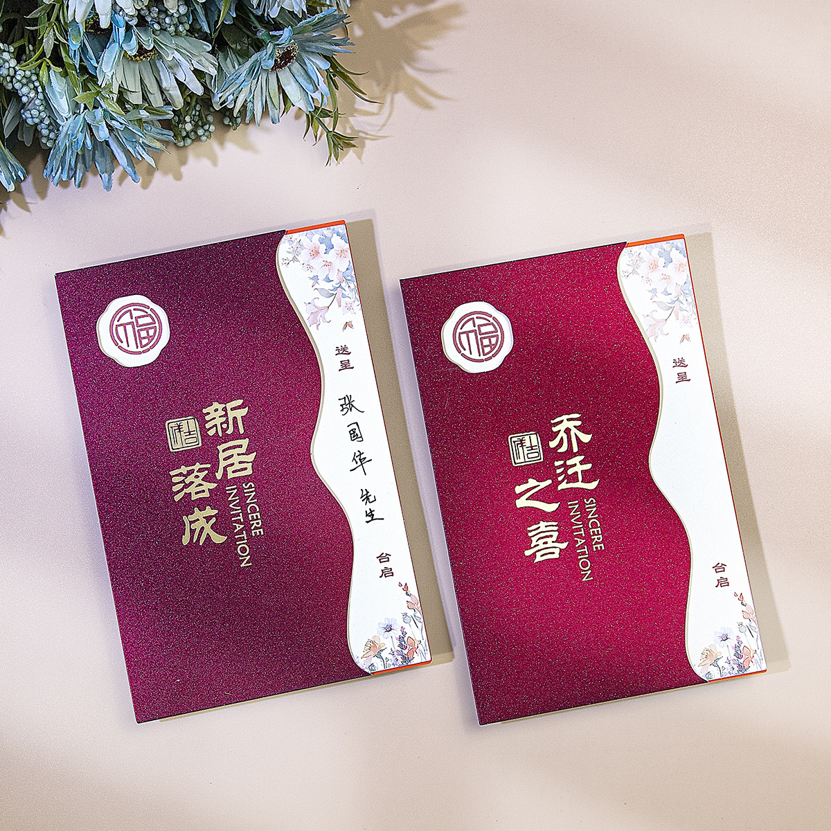 厂家直销新款中式烫金婚礼婚宴邀请函乔迁之喜入宅折叠式请柬批发