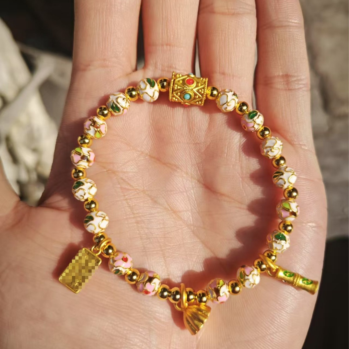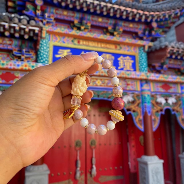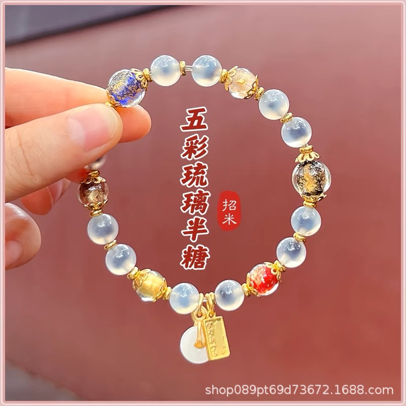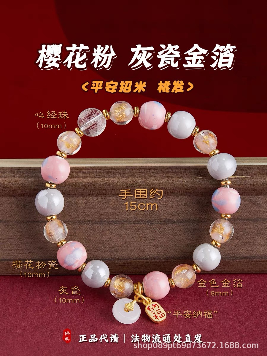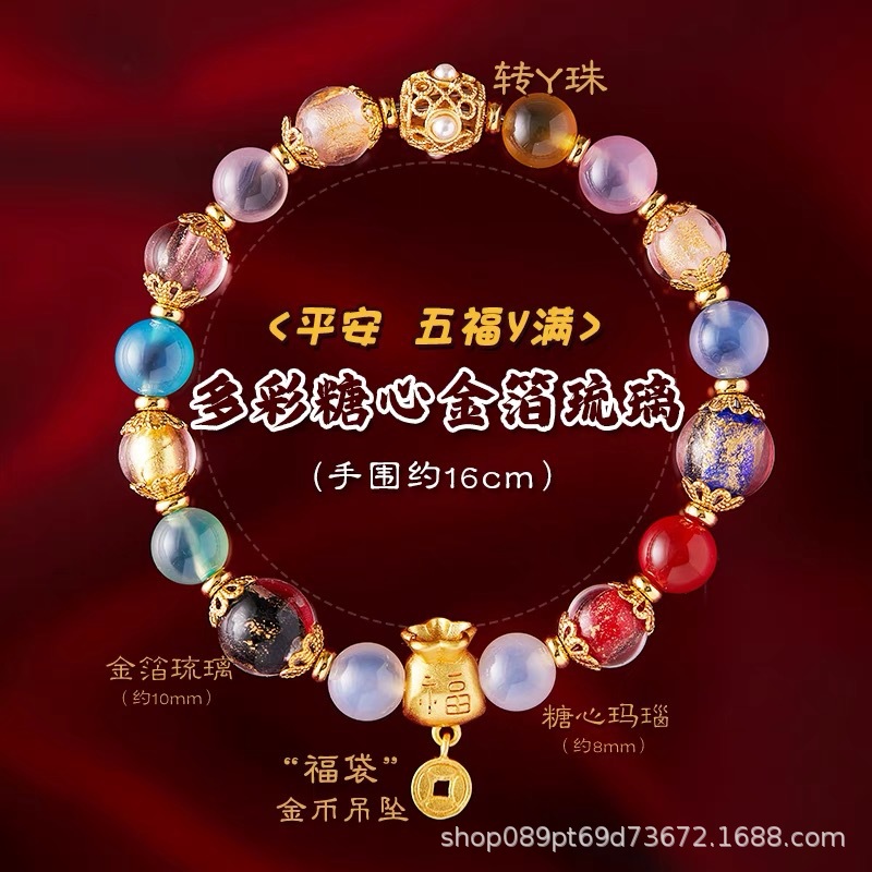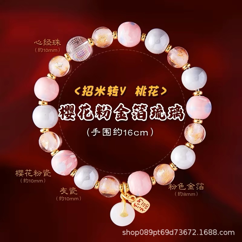 北京雍和桜花粉金箔瑠璃手串女寺同項観光スポット屋台納福ブレスレットアクセサリー卸売り