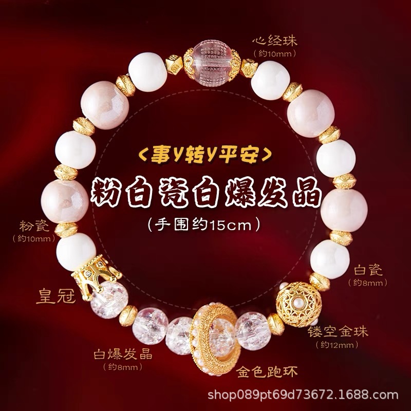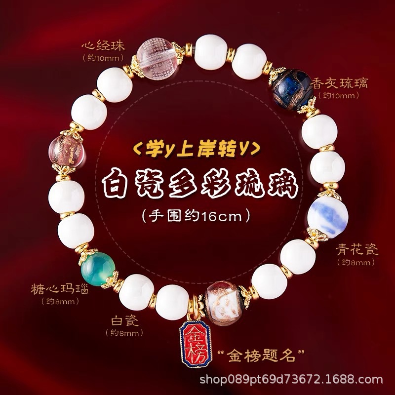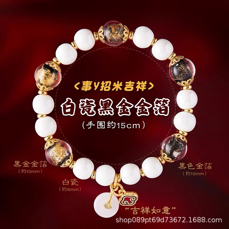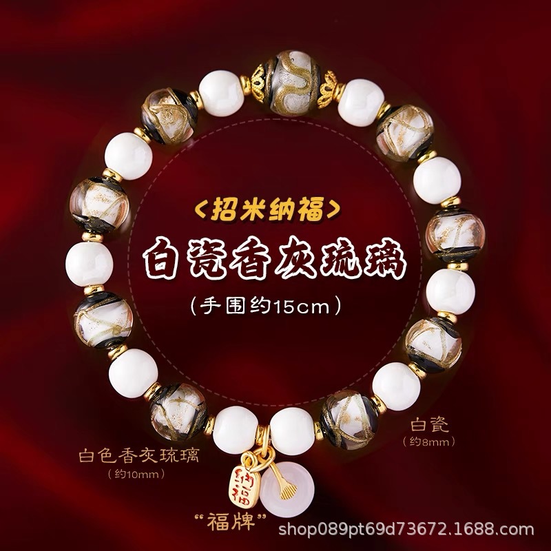 真珠光沢の磁器ビーズのブレスレット、宮殿や寺院と同じスタイルの香灰磁器、DIY文玩アクセサリー、景勝地の文化創意ブレスレット