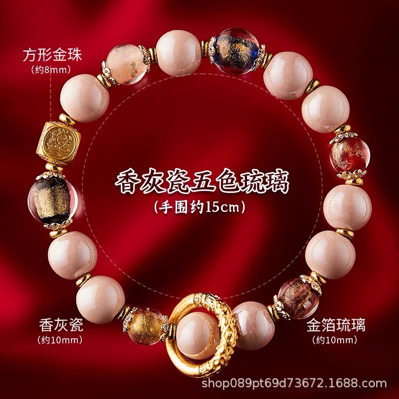 北京雍和香灰ガラスブレスレット、香灰磁器金獅子ブレスレット、寺院景勝地人気商品卸売