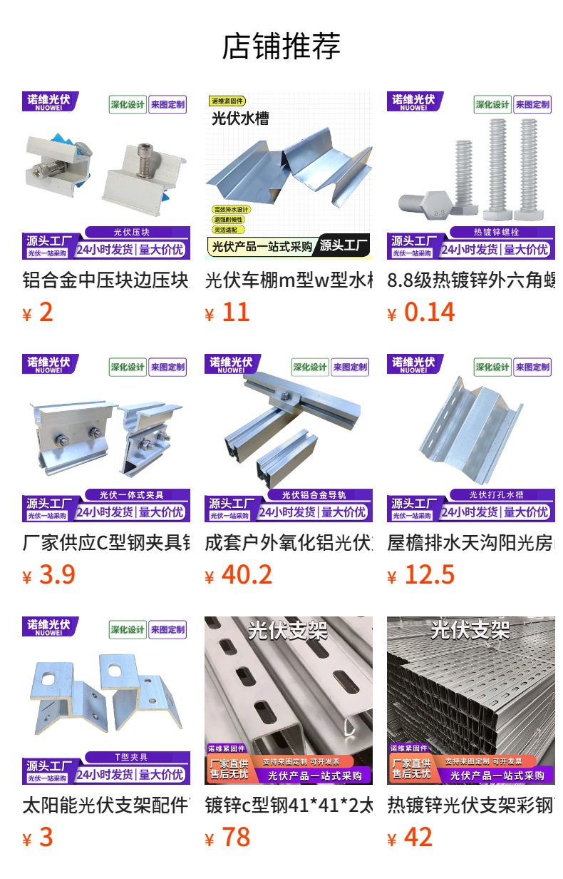 太陽光発電ブラケットガイド接続部品メーカー溶融亜鉛メッキアルミニウム合金形材ガイドブラケット接続部品